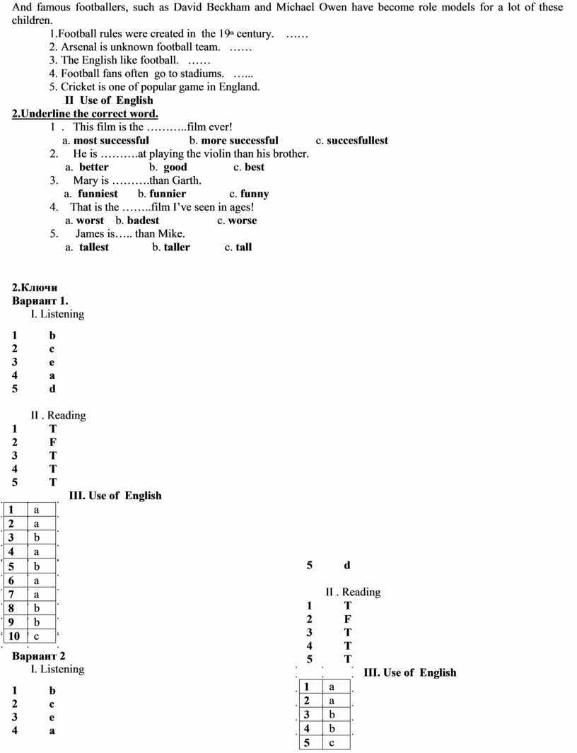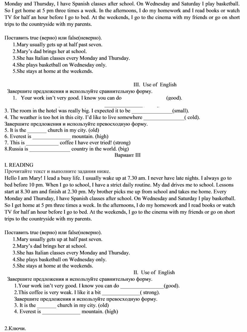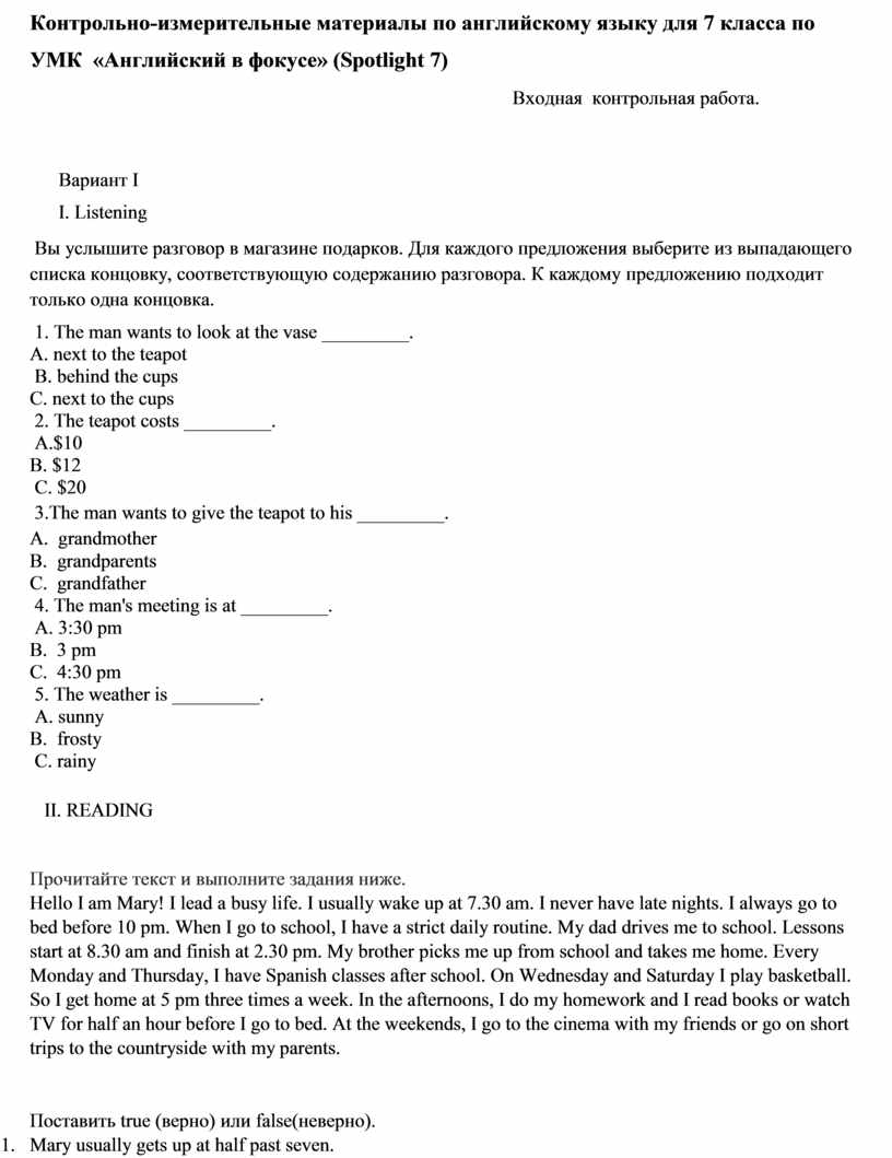 материалы по английскому языку для 7 класса по УМК «Английский