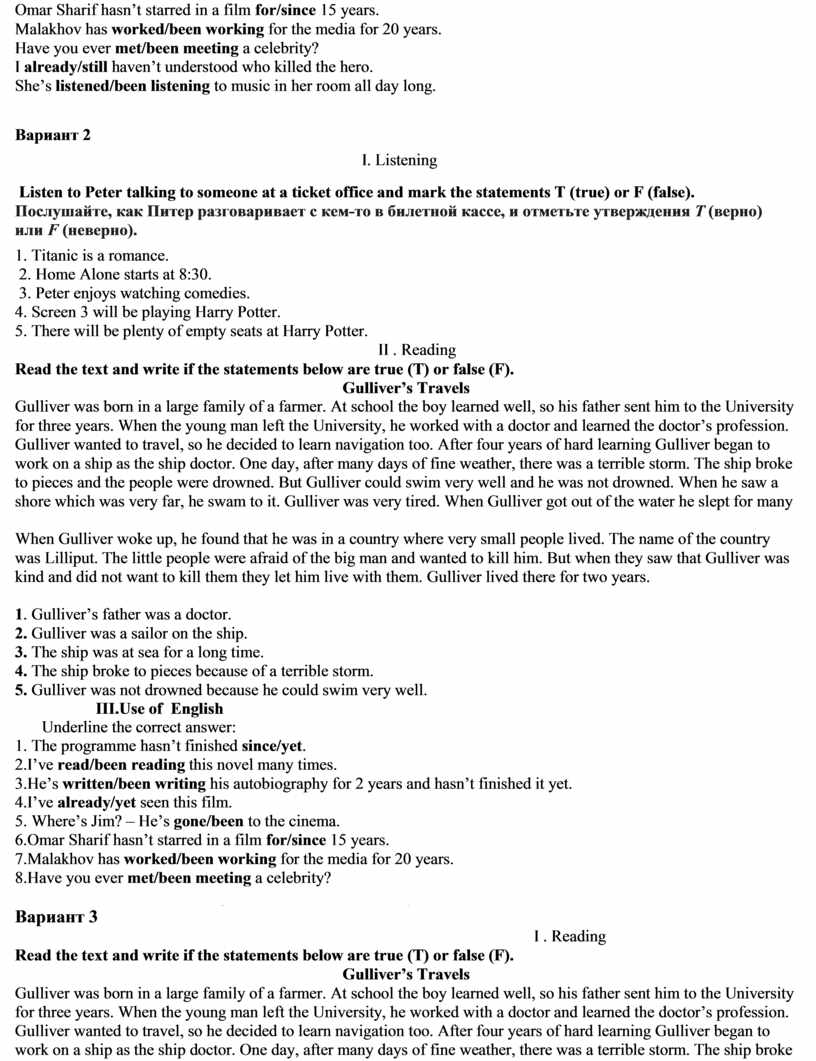 Входная контрольная работа.