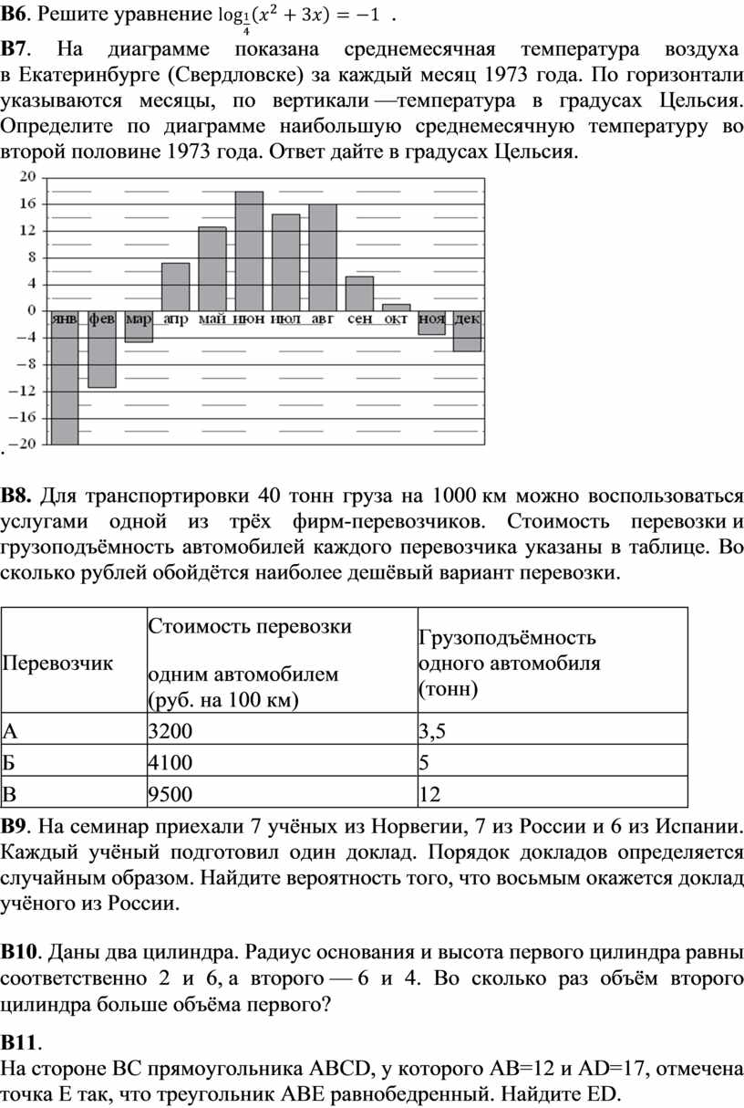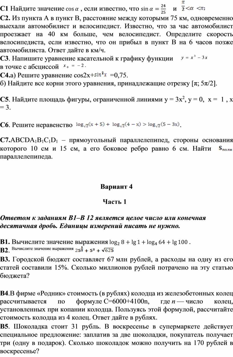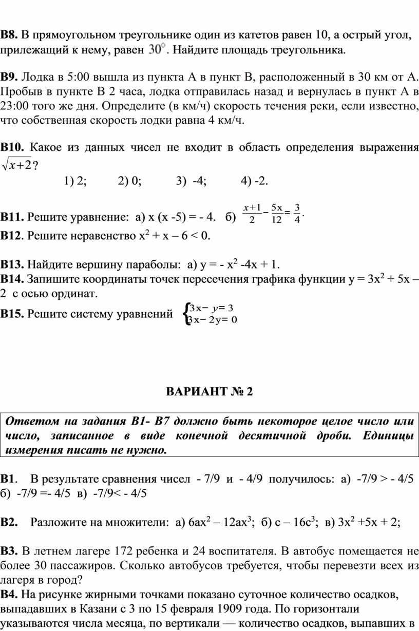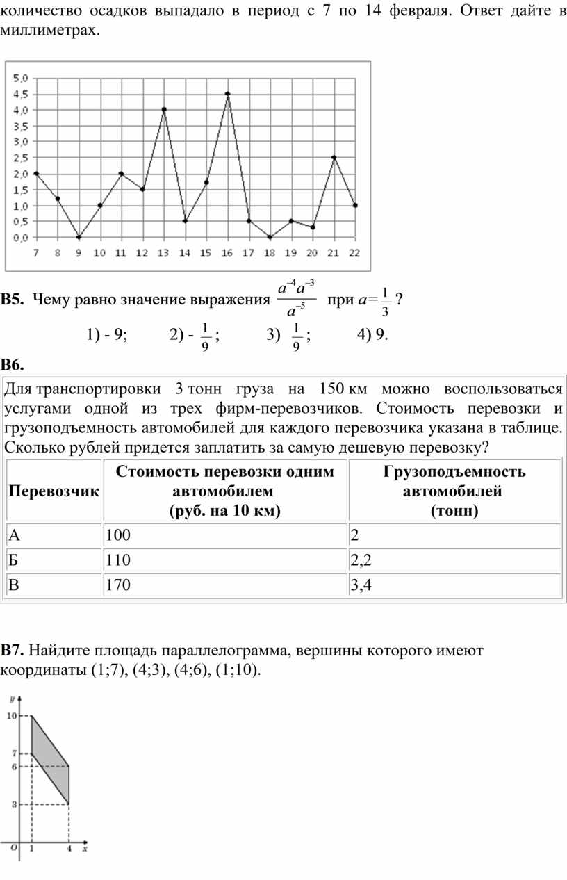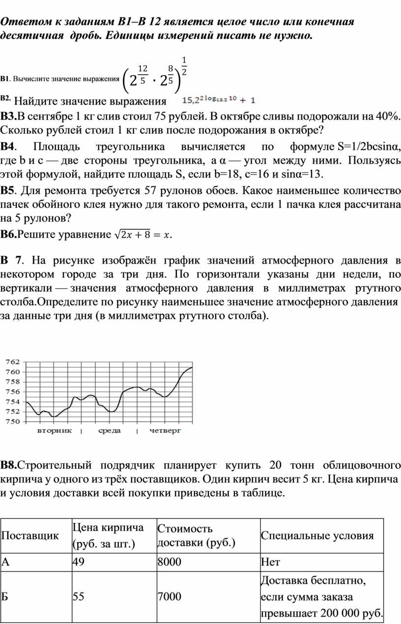 Каждое из заданий В1–В12 считается выполненными верно, если экзаменуемый дал верный ответ в виде целого числа или конечной десятичной дроби. Каждое верно выполненное задание оценивается 1 баллом.