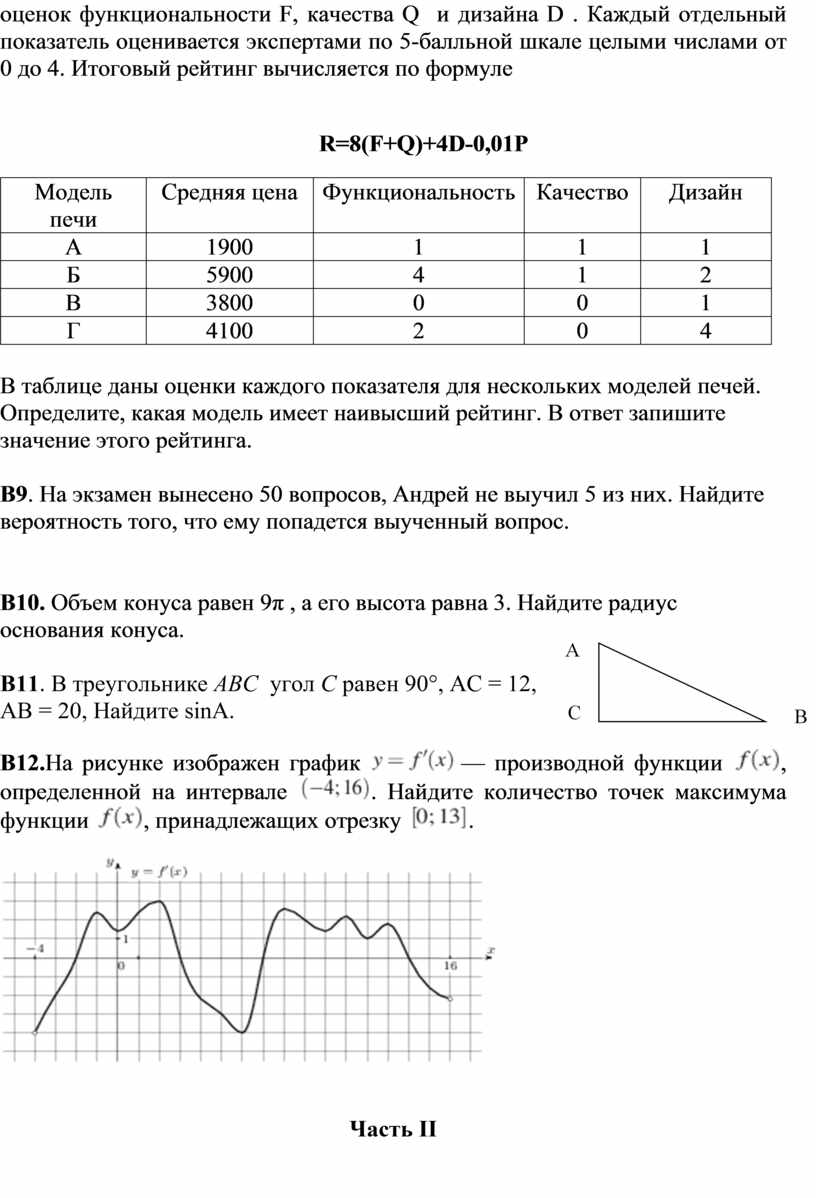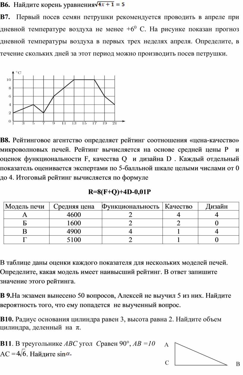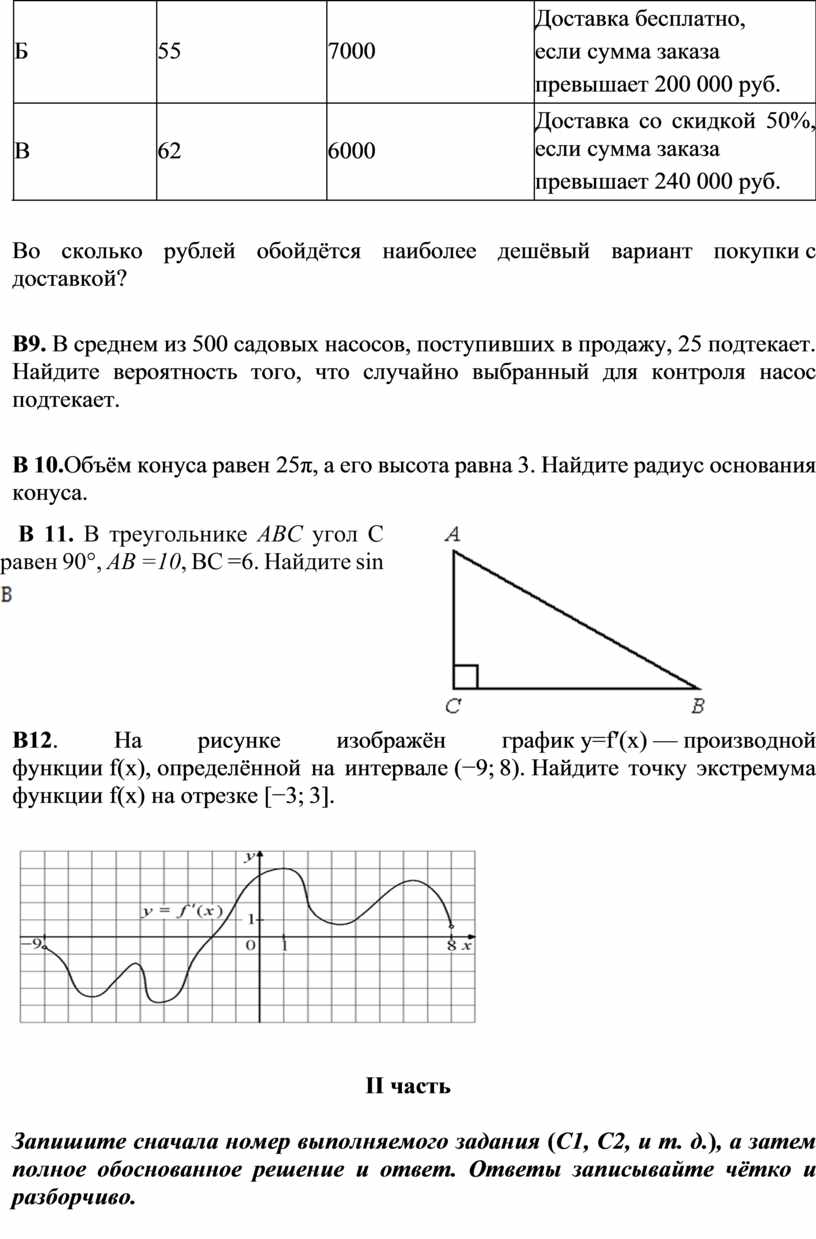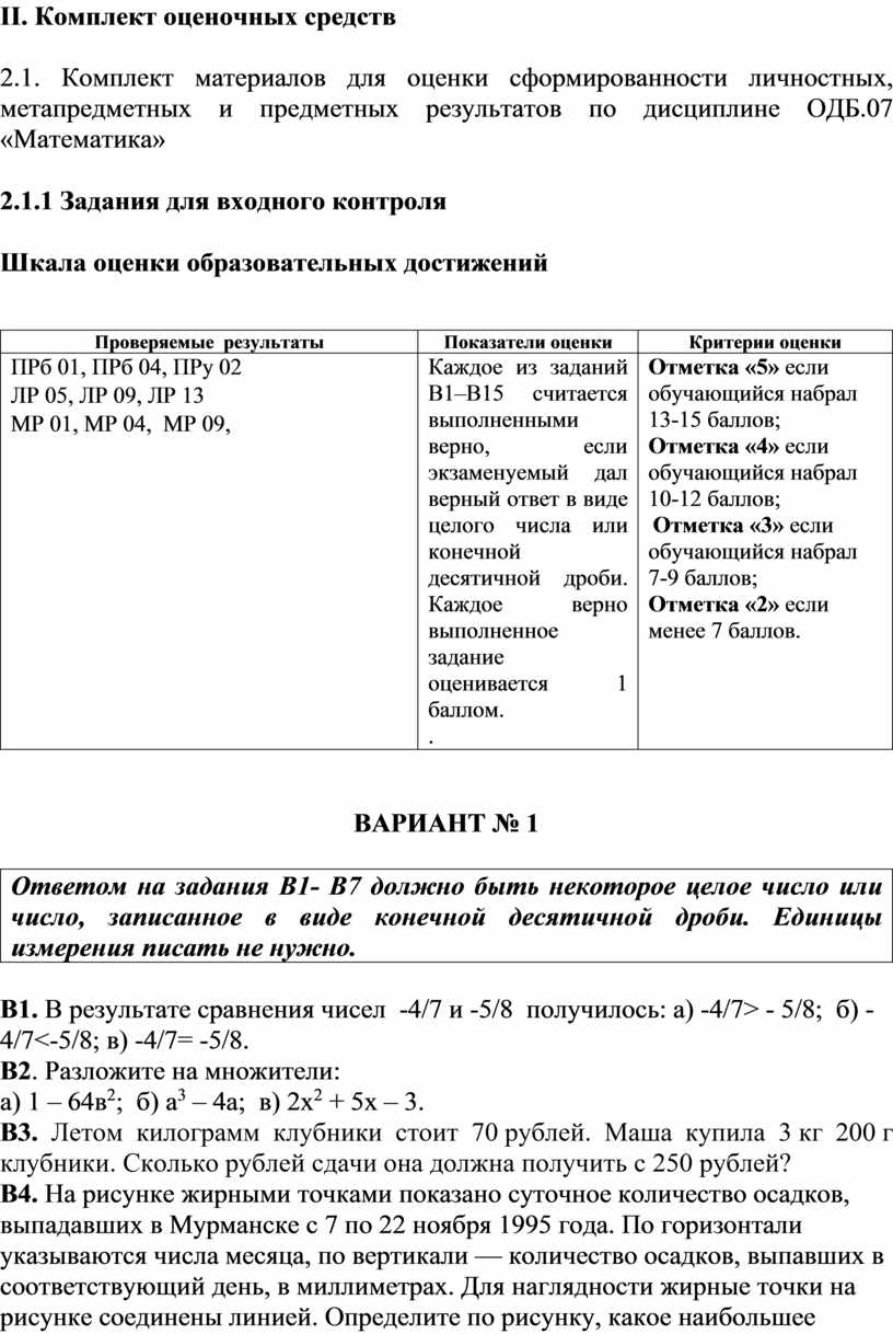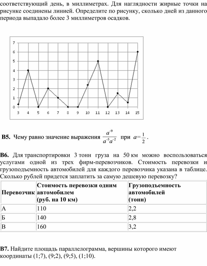 Каждое из заданий В1–В12 считается выполненными верно, если экзаменуемый дал верный ответ в виде целого числа или конечной десятичной дроби. Каждое верно выполненное задание оценивается 1 баллом.
