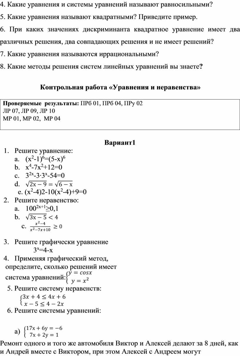 ПРб 04. Владение стандартными приёмами решения рациональных и иррациональных, показательных, степенных, тригонометрических уравнений и неравенств, их систем; использование готовых компьютерных программ, в том числе для поиска пути решения и иллюстрации решения уравнений и неравенств;