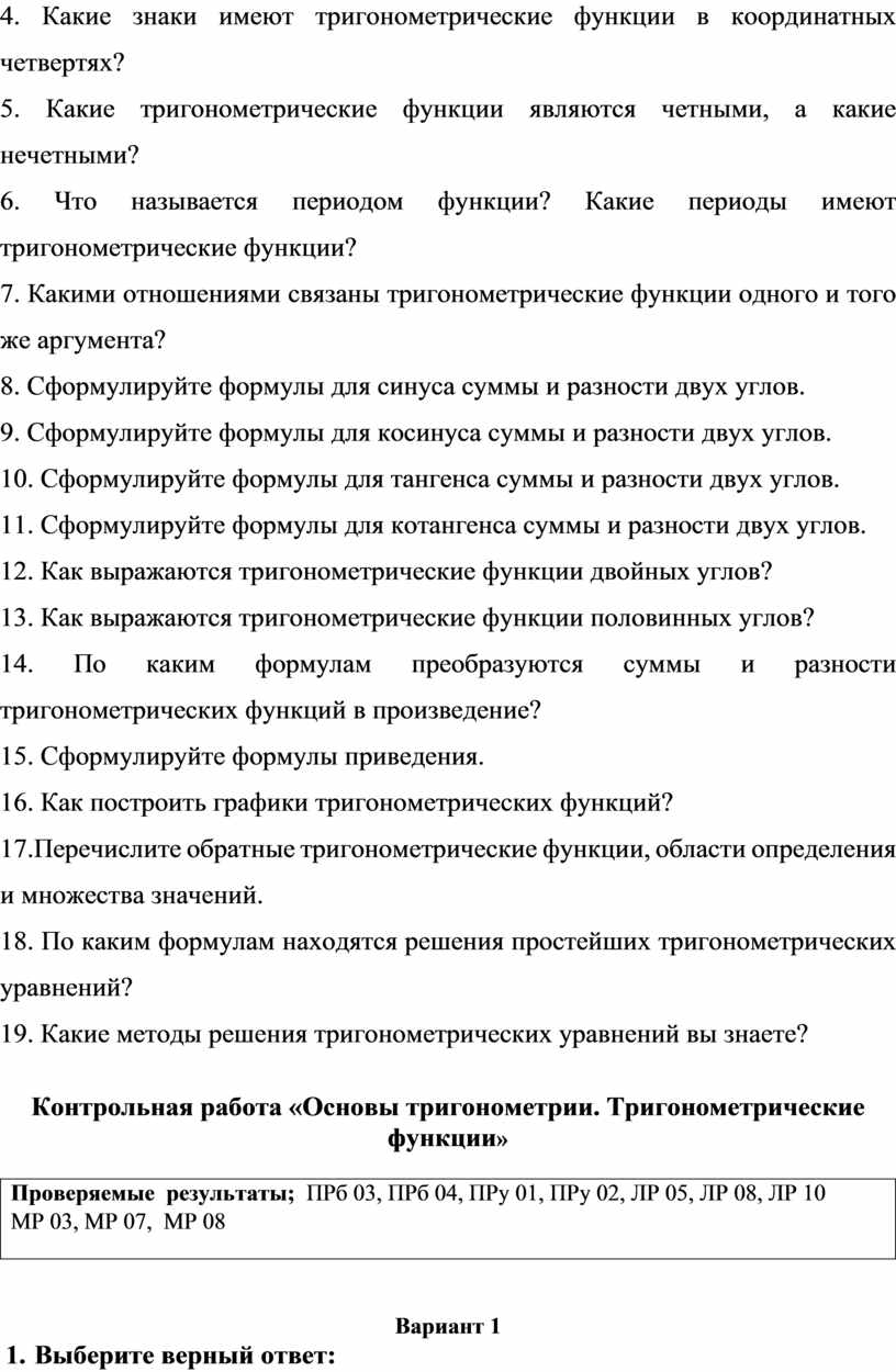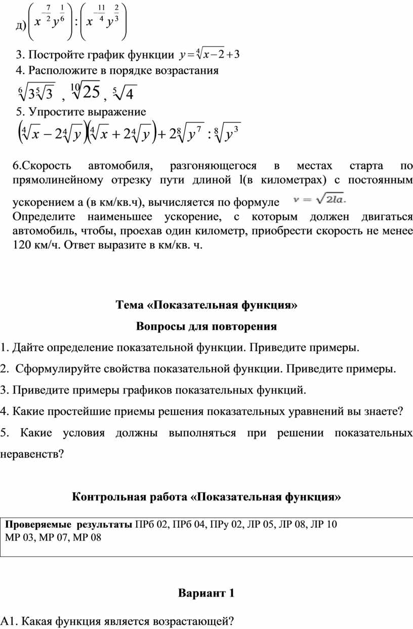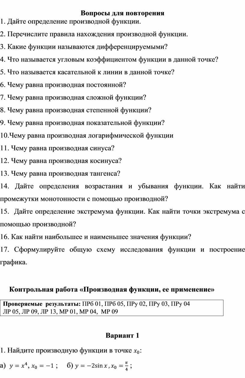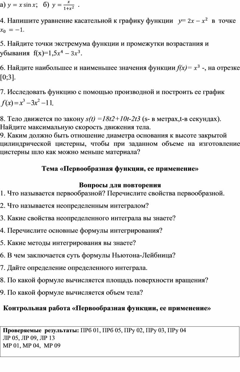 ПРу 04. Сформированность представлений об основных понятиях математического анализа и их свойствах, владение умением характеризовать поведение функций, использование полученных знаний для описания и анализа реальных зависимостей;