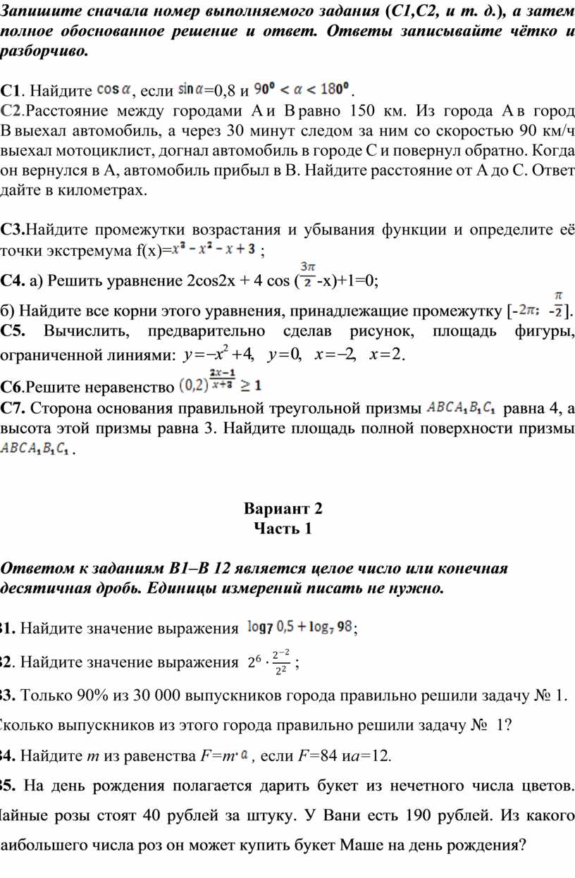 Общие требования к выполнению заданий с развёрнутым ответом: решение должно быть математически грамотным, полным, все возможные случаи должны быть рассмотрены. Методы решения, формы его записи иформы записи ответа могут быть разными. За решение, в котором обоснованно получен правильный ответ, выставляется максимальное количество баллов. Правильный ответ при отсутствии текста решения оценивается в 0 баллов.