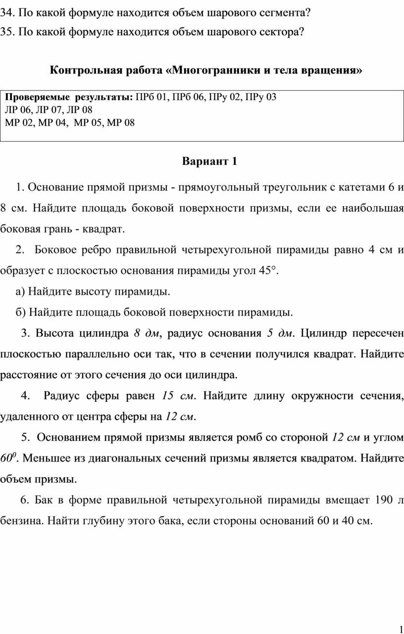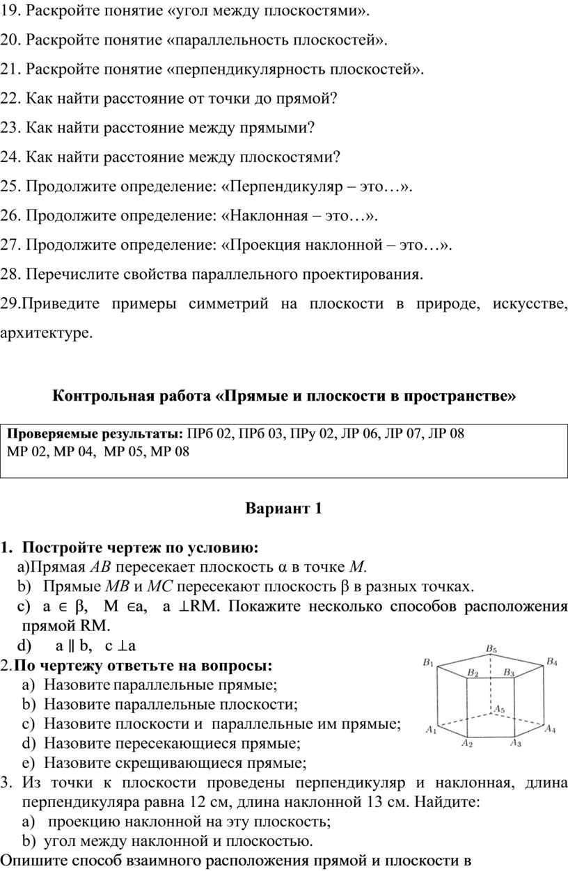ПРб 06. Владение основными понятиями о плоских и пространственных геометрических фигурах, их основных свойствах; сформированность умения распознавать на чертежах, моделях и в реальном мире геометрические фигуры; применение изученных свойств геометрических фигур и формул для решения геометрических задач и задач с практическим содержанием;