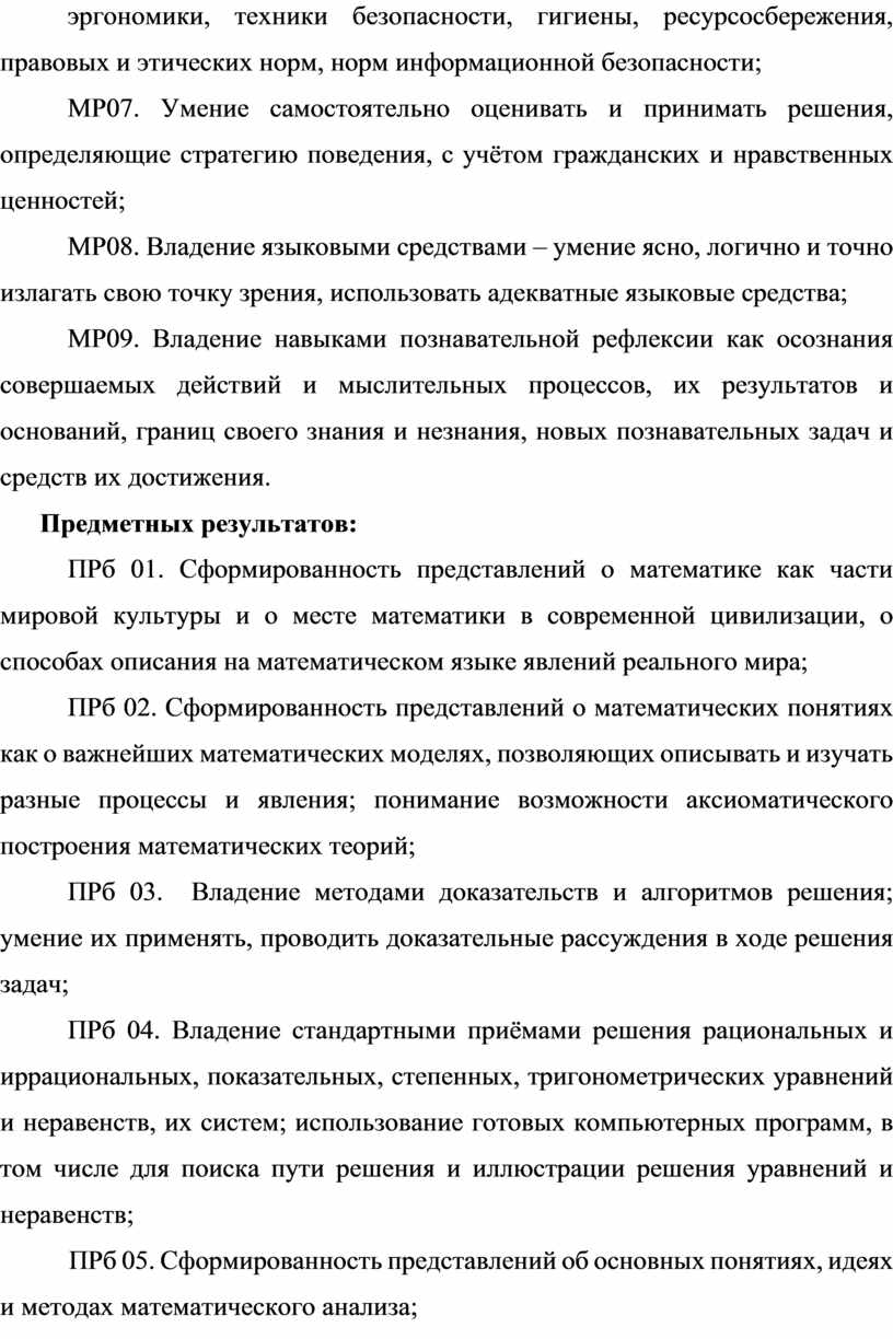 ПРб 01. Сформированность представлений о математике как части мировой культуры и о месте математики в современной цивилизации, о способах описания на математическом языке явлений реального мира;