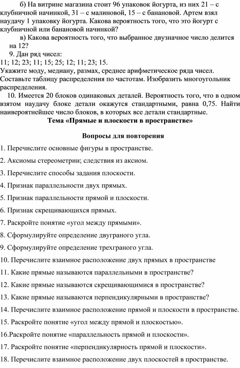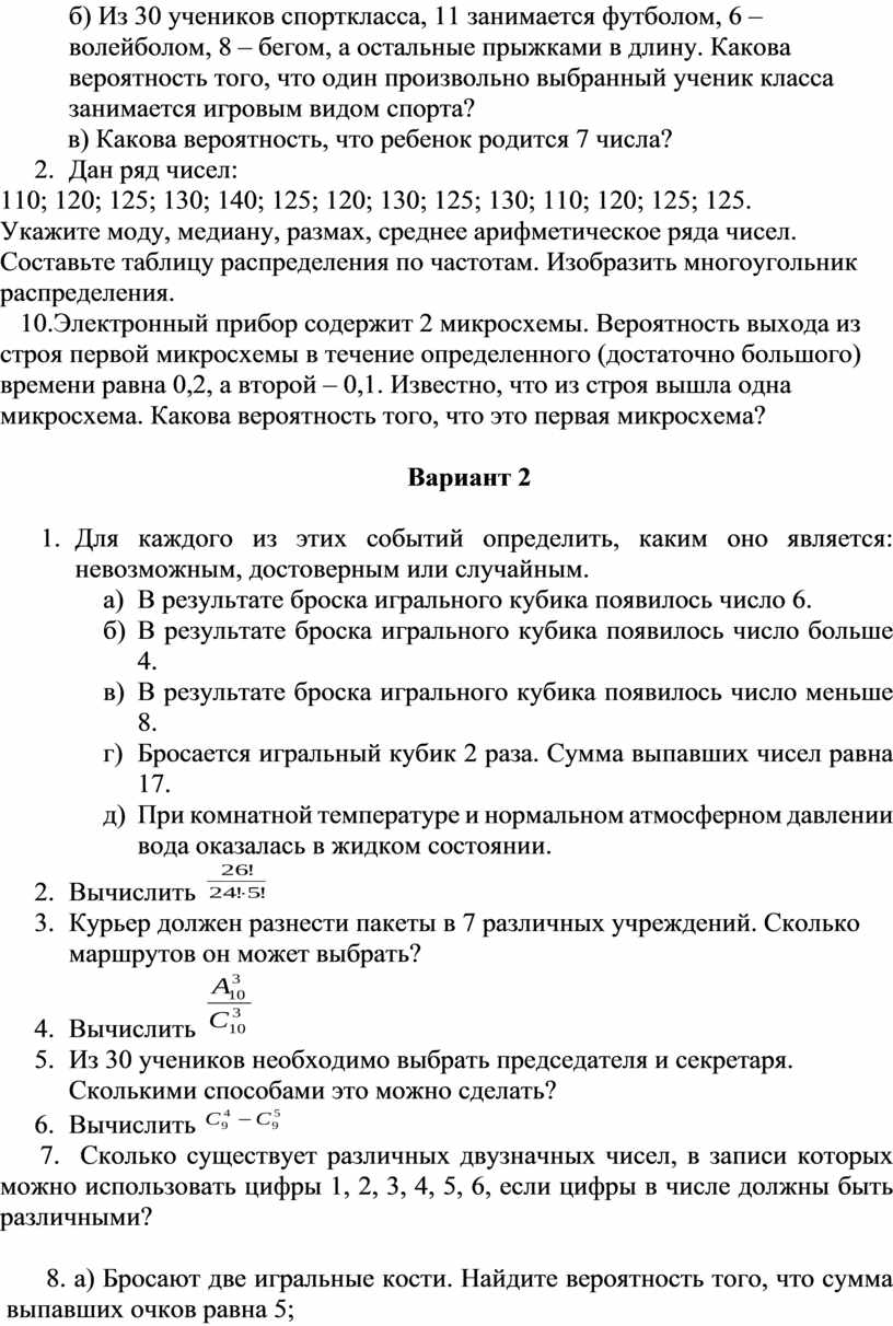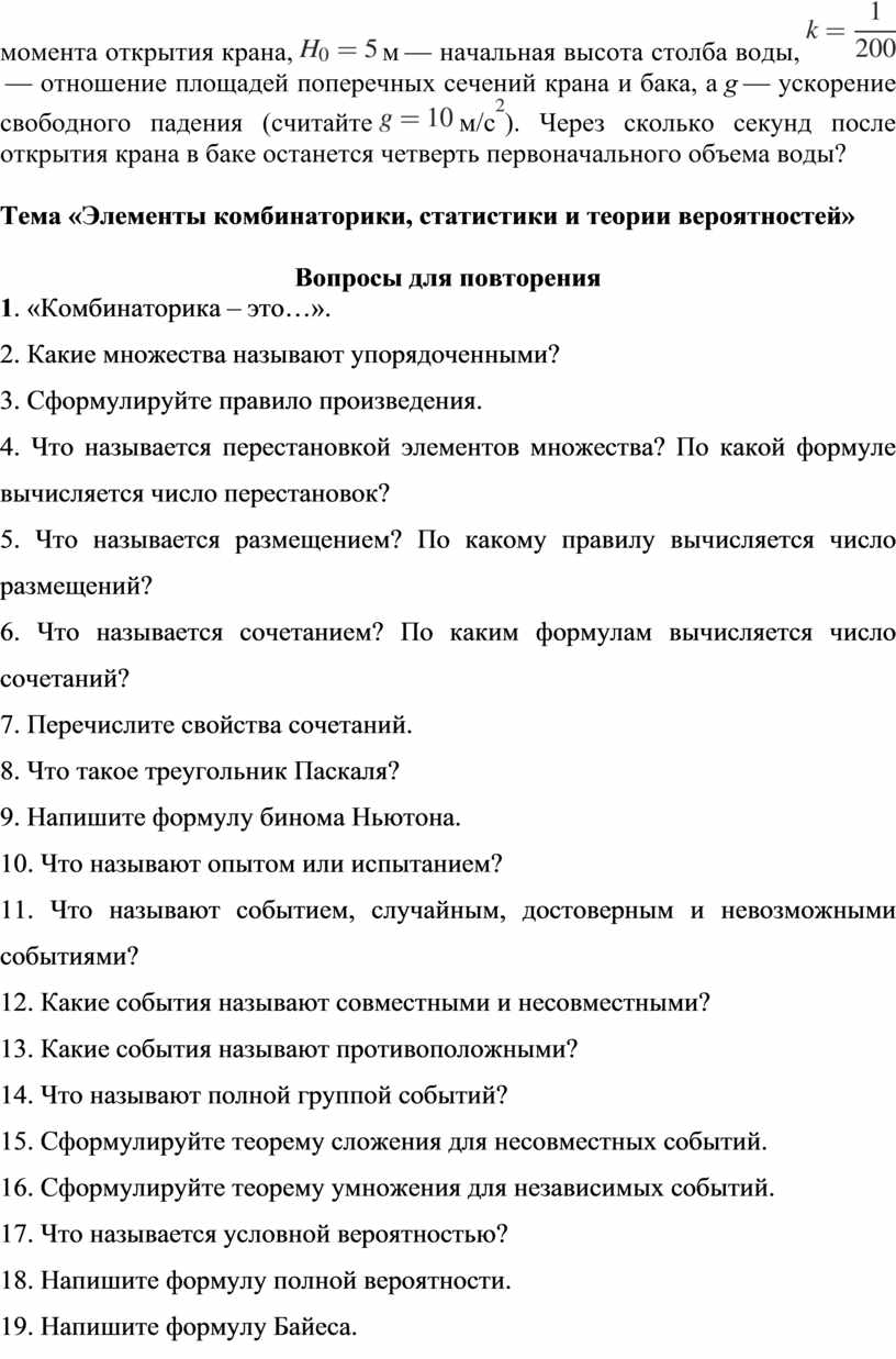 Раздел 3. Элементы комбинаторики, теории вероятностей и математической статистики