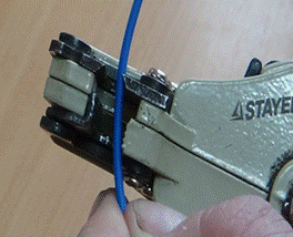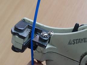 4. Подготовить концы жил. Снять изоляцию с провода, на расстояние равное половине наконечника;