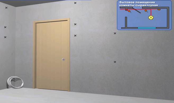 11. Выполнить проводку в соседнее помещение (помещение влажное);