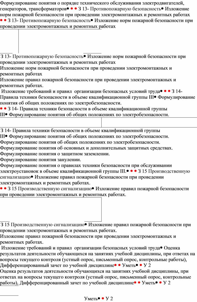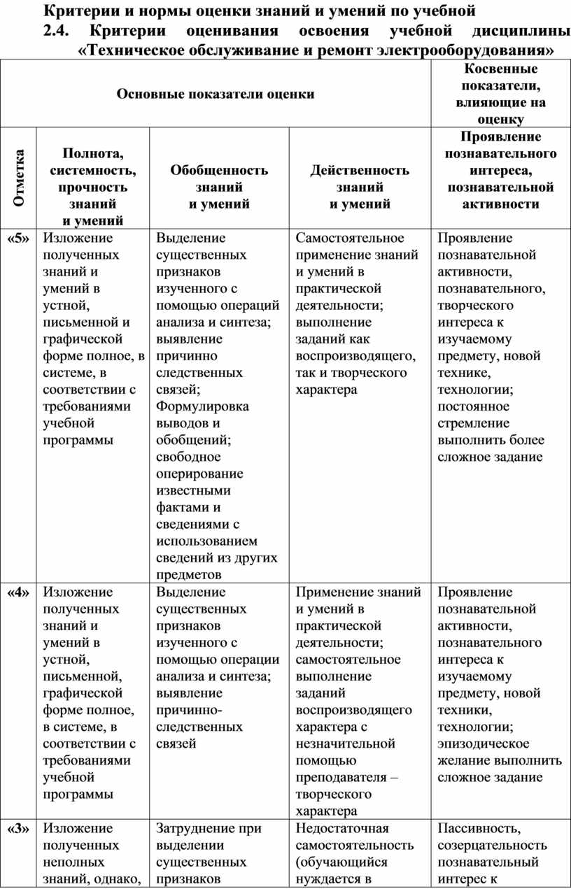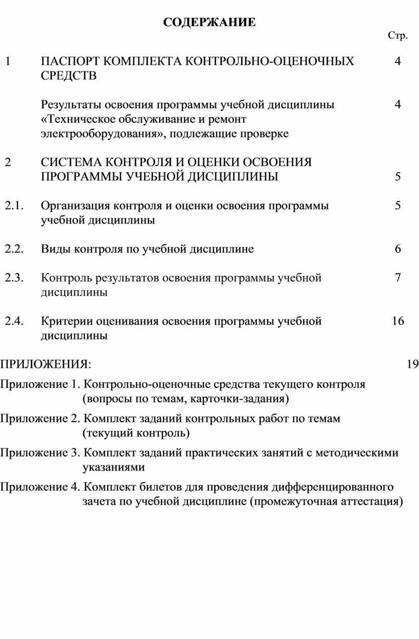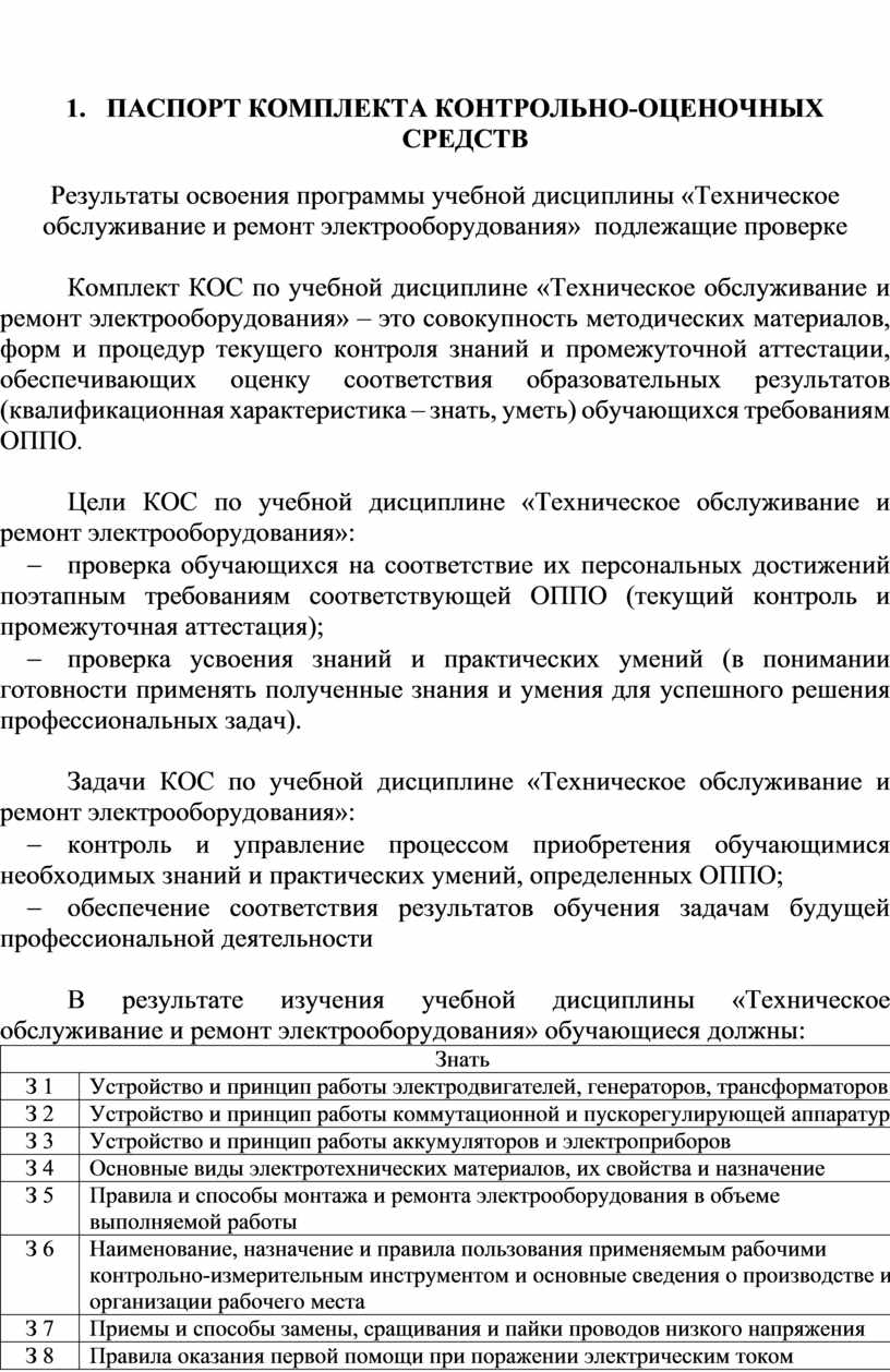 Комплект КОС по учебной дисциплине «Техническое обслуживание и ремонт электрооборудования» – это совокупность методических материалов, форм и процедур текущего контроля знаний и промежуточной аттестации, обеспечивающих оценку соответствия образовательных результатов (квалификационная характеристика – знать, уметь) обучающихся требованиям ОППО.