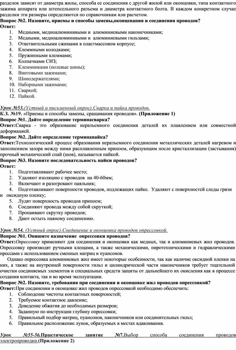 Вопрос№1.Опишите технику и технологию сращивания проводов низкого напряжения(параметры задания: способ – оконцевание; прием-опрессовка; провод ПВГ-16)