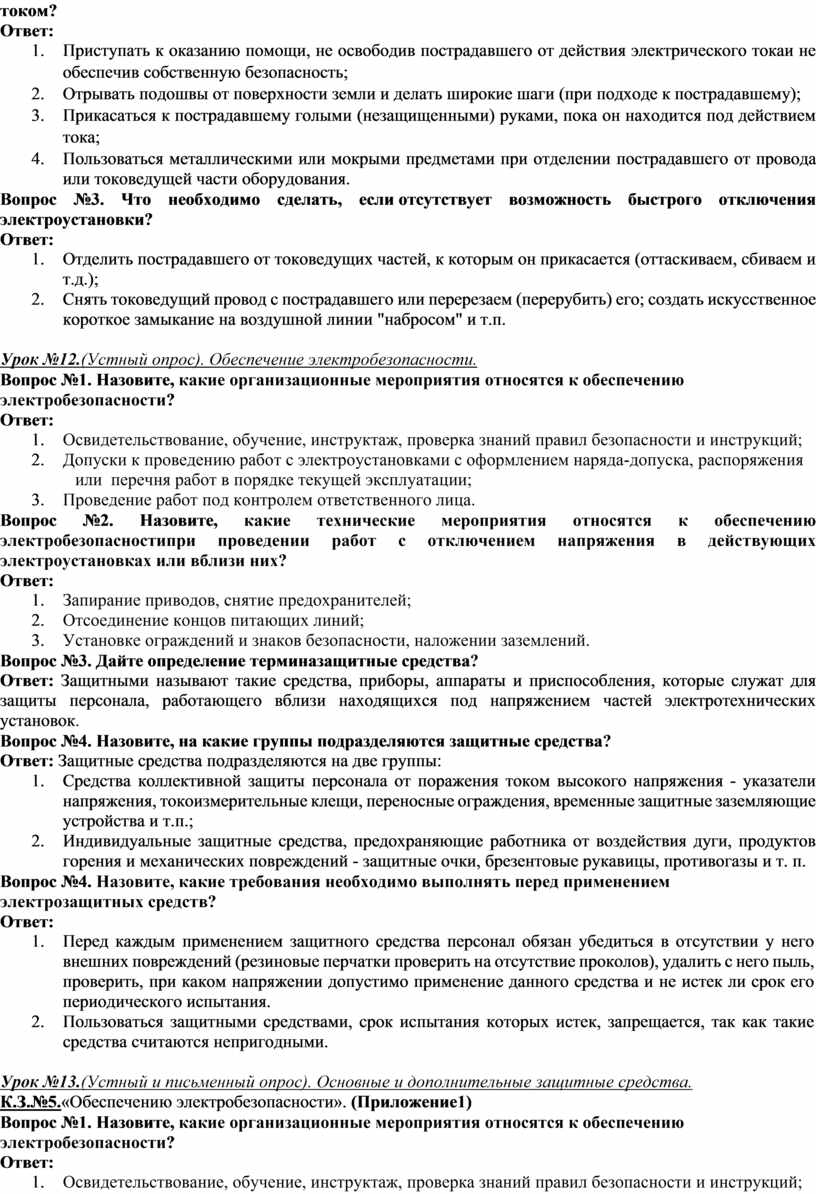 Вопрос№3.Дайте определение понятию «Электробезопасность» Ответ: Для предотвращения опасности поражения электрическим током применяется система электробезопасности. Электробезопасность - система организационных и технических мероприятий и средств, обеспечивающих защиту людей и животных от вредного и опасного воздействия электрического тока, электрической дуги, электромагнитного поля и статического электричества (ГОСТ Р 12.1.009-2009 ССБТ. Электробезопасность. Термины и определения). Электробезопасность включает в себя правовые, социально-экономические, организационно-технические, санитарно-гигиенические, лечебно-профилактические, реабилитационные и иные мероприятия. Общие правила, устройство, принципы построения, особые требования к отдельным системам, а также элементам, узлам и коммуникациям электроустановок определены в Правилах устройства электроустановок (ПУЭ). Согласно пункту 1.1.1 ПУЭ действие ПУЭ распространяется на вновь сооружаемые и реконструируемые электроустановки постоянного и переменного тока напряжением до 750 кВ, в том числе на специальные электроустановки.