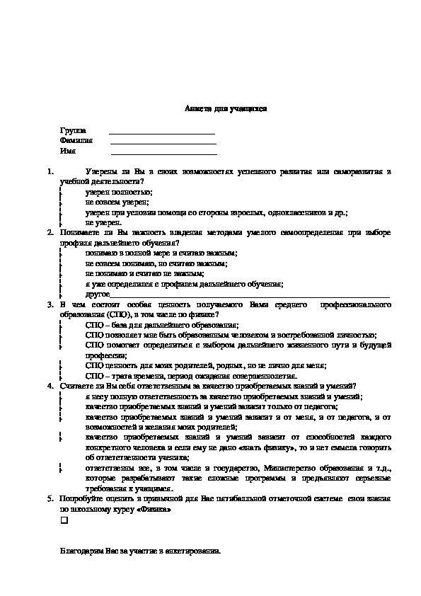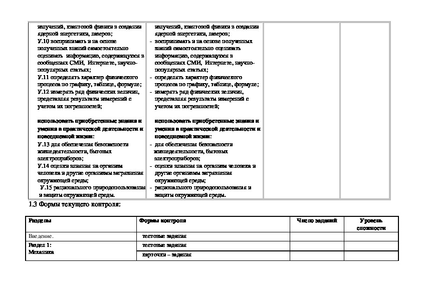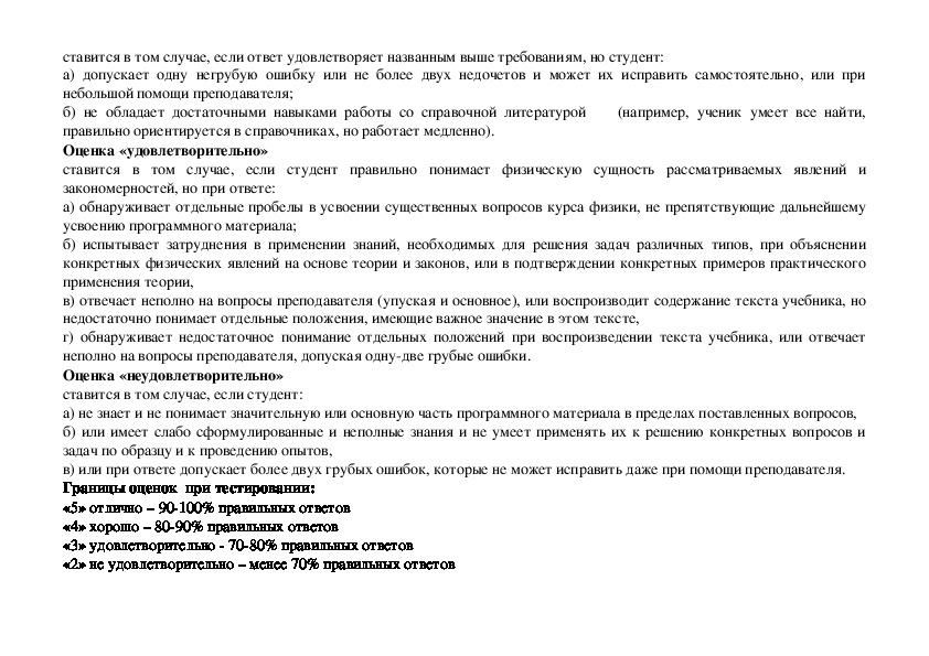• программы учебной дисциплины Физика