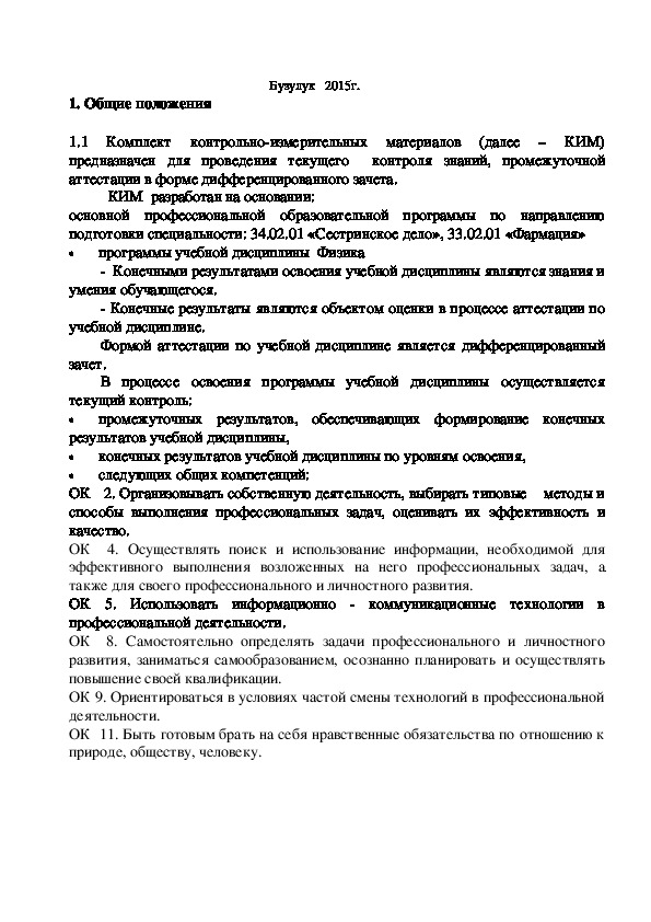 по специальности: 34.02.01 «Сестринское дело», 33.02.01 «Фармация»Бузулук 2015г.