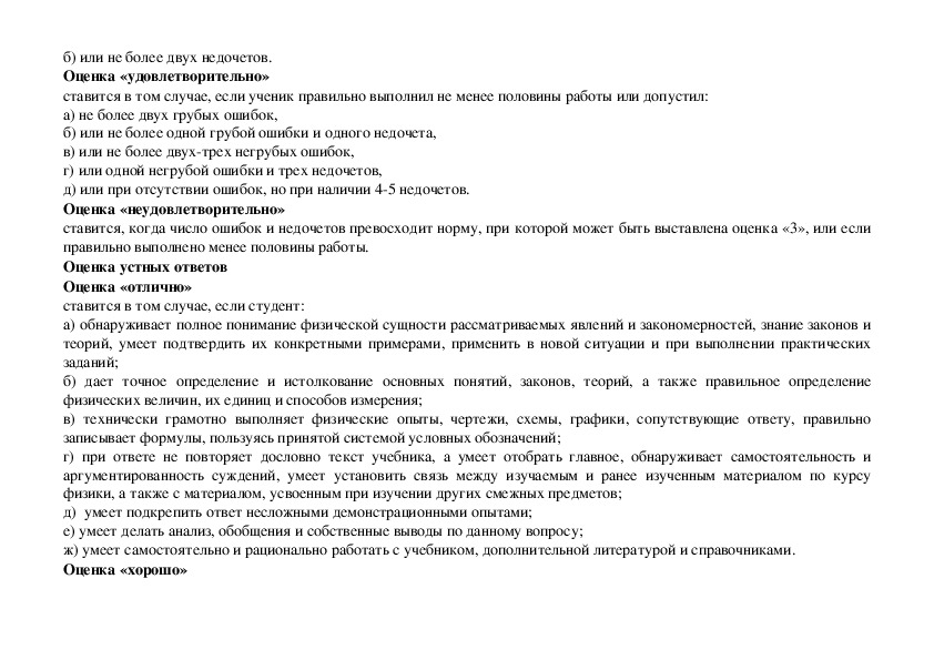 а) не более одной негрубой ошибки и одного недочета,б) или не более двух недочетов.