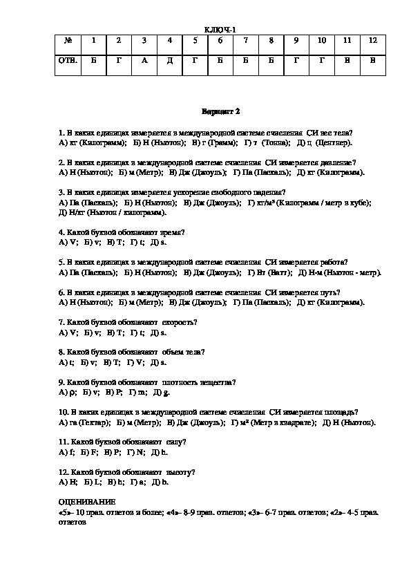 1.1 Комплект контрольноизмерительных материалов (далее – КИМ)