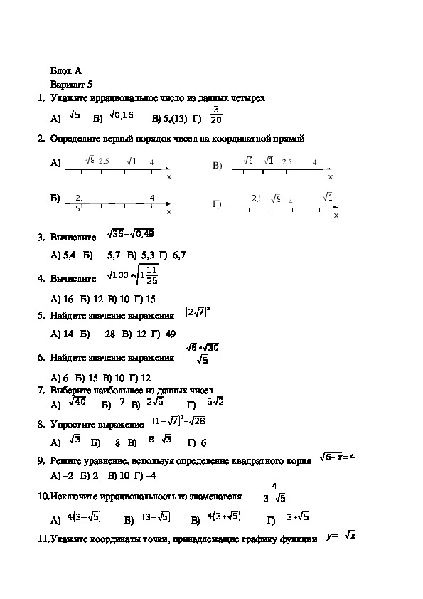 A) √5 Б) √0,16 В) 5,(13) Г)