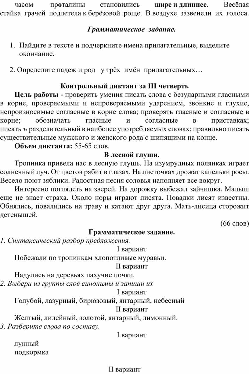 «Контрольные диктанты с грамматическим заданием для 3 класса.»