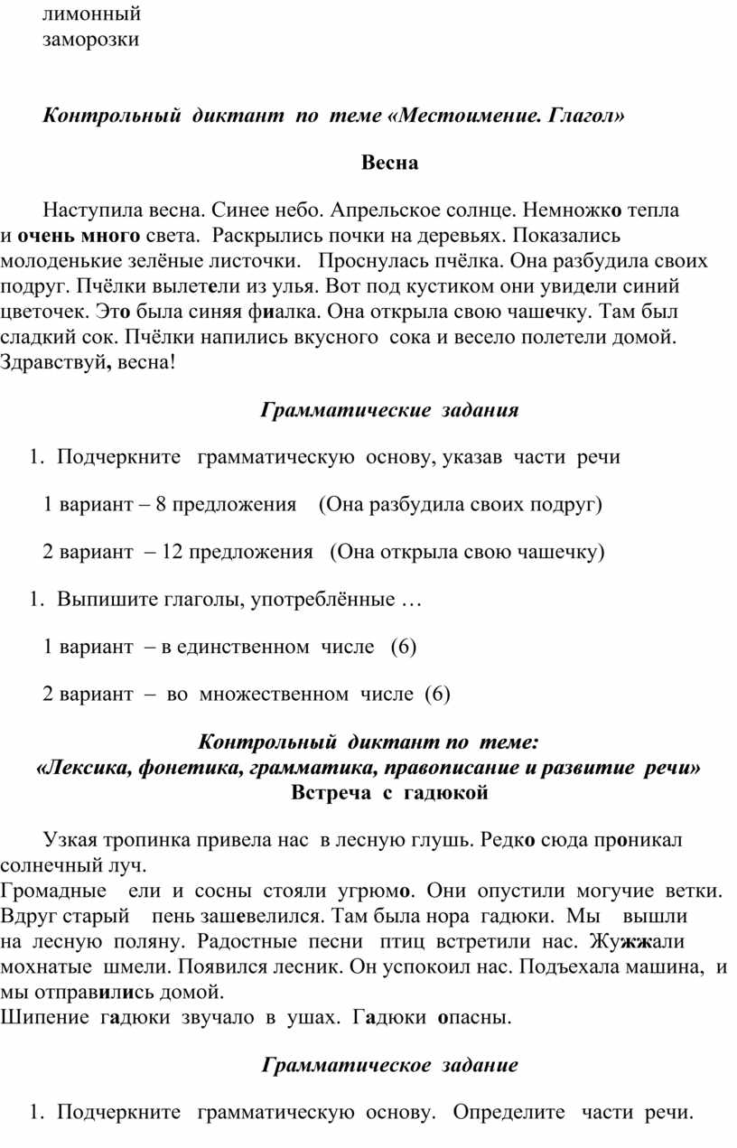 2. Контрольный диктант по теме: « Слово и слог. Состав слова»