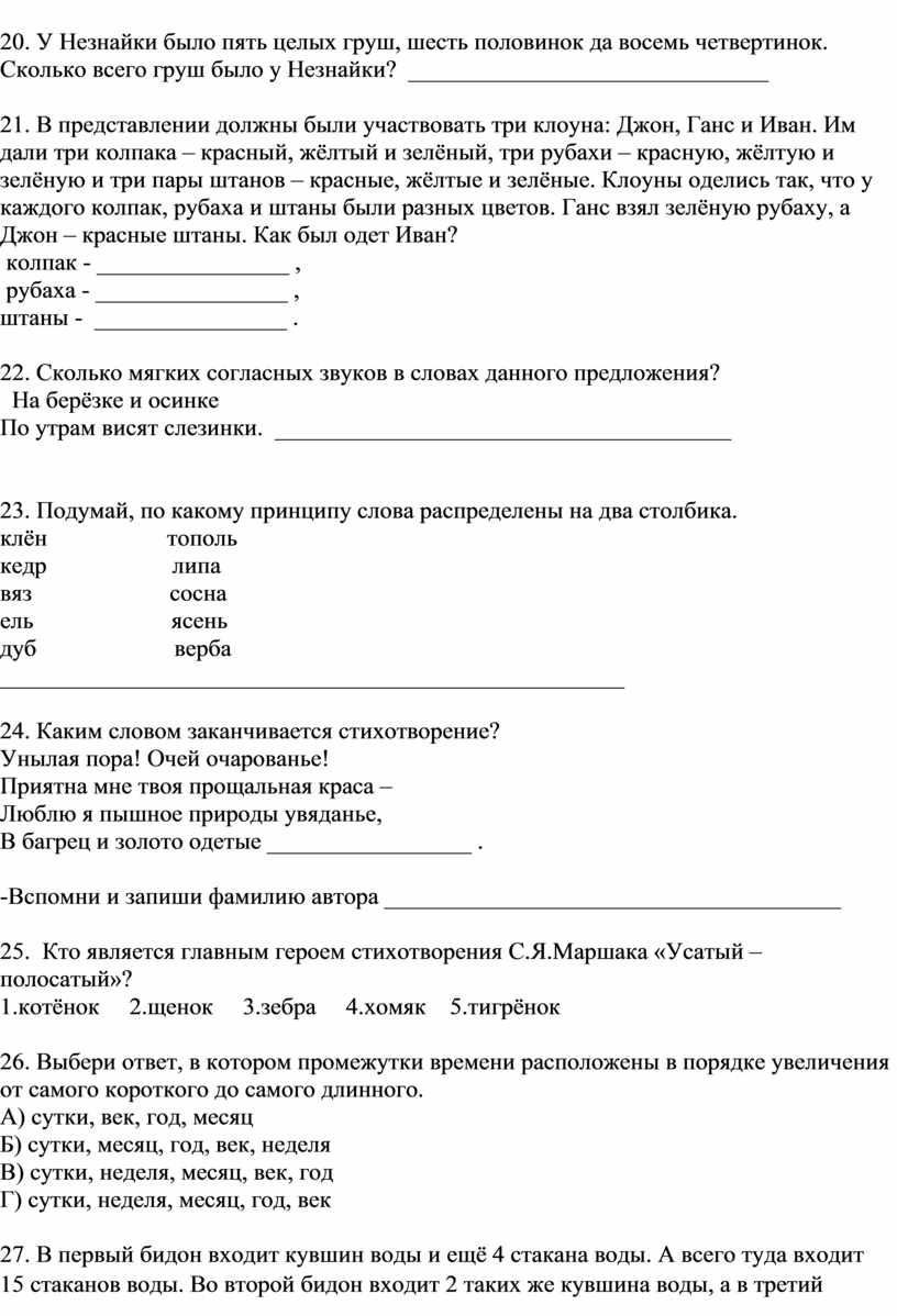 20. У Незнайки было пять целых груш, шесть половинок да восемь четвертинок. Сколько всего груш было у Незнайки? ______________________________