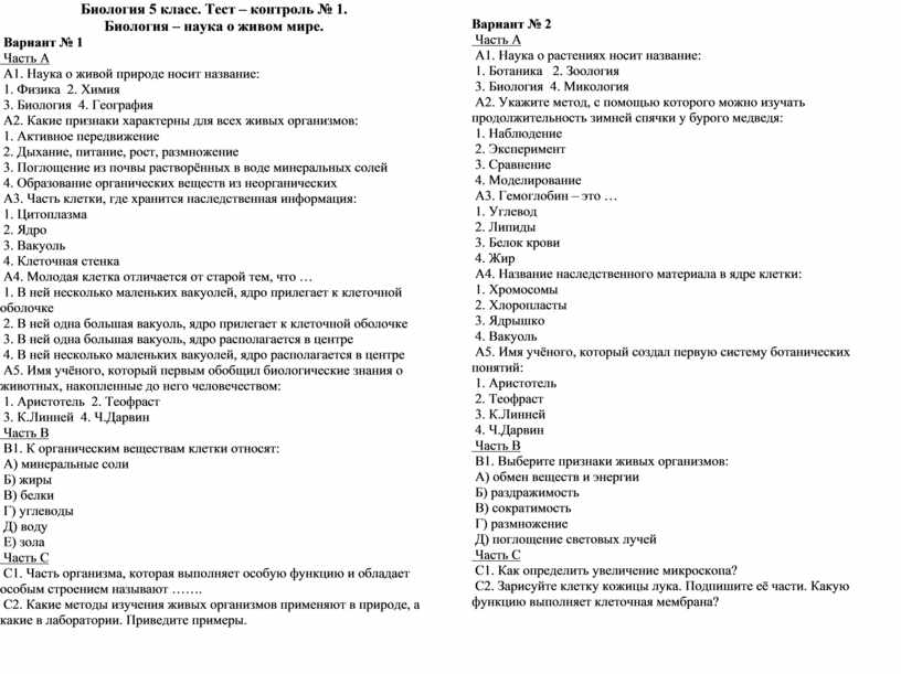 С2 - Живой организм: обмен веществ и энергии, рост и развитие, размножение, раздражимость