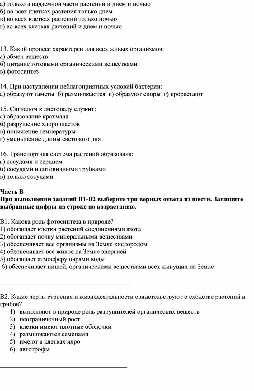 В2. Какие черты строения и жизнедеятельности свидетельствуют о сходстве растений и грибов?