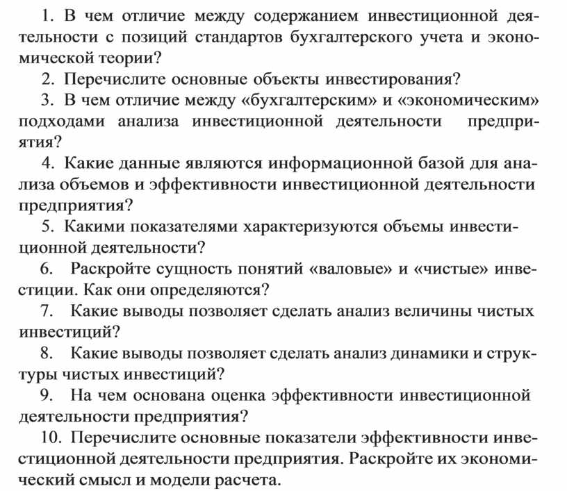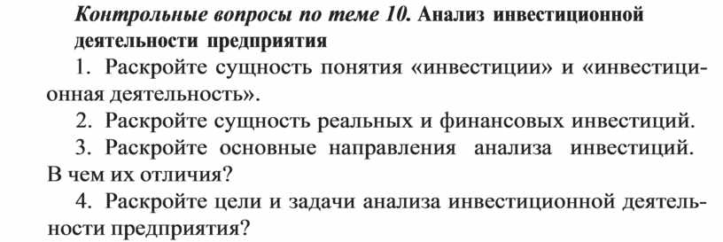 Контрольные вопросы по теме 10. Анализ инвестиционной деятельности предприятия