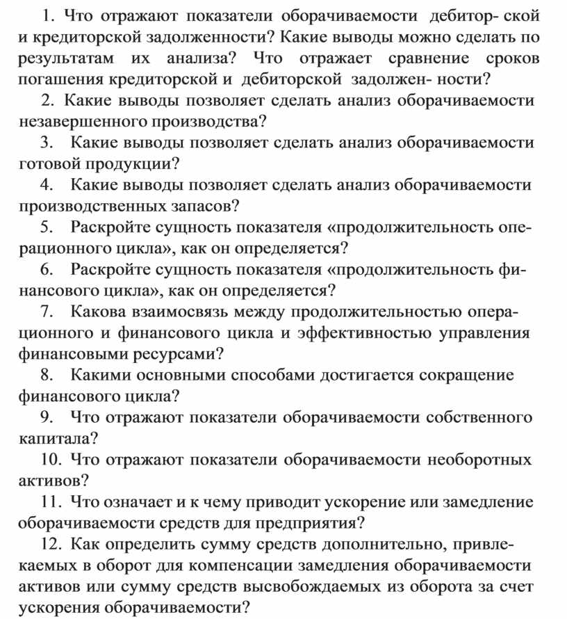 Контрольные вопросы по теме 7. Анализ деловой активности предприятия