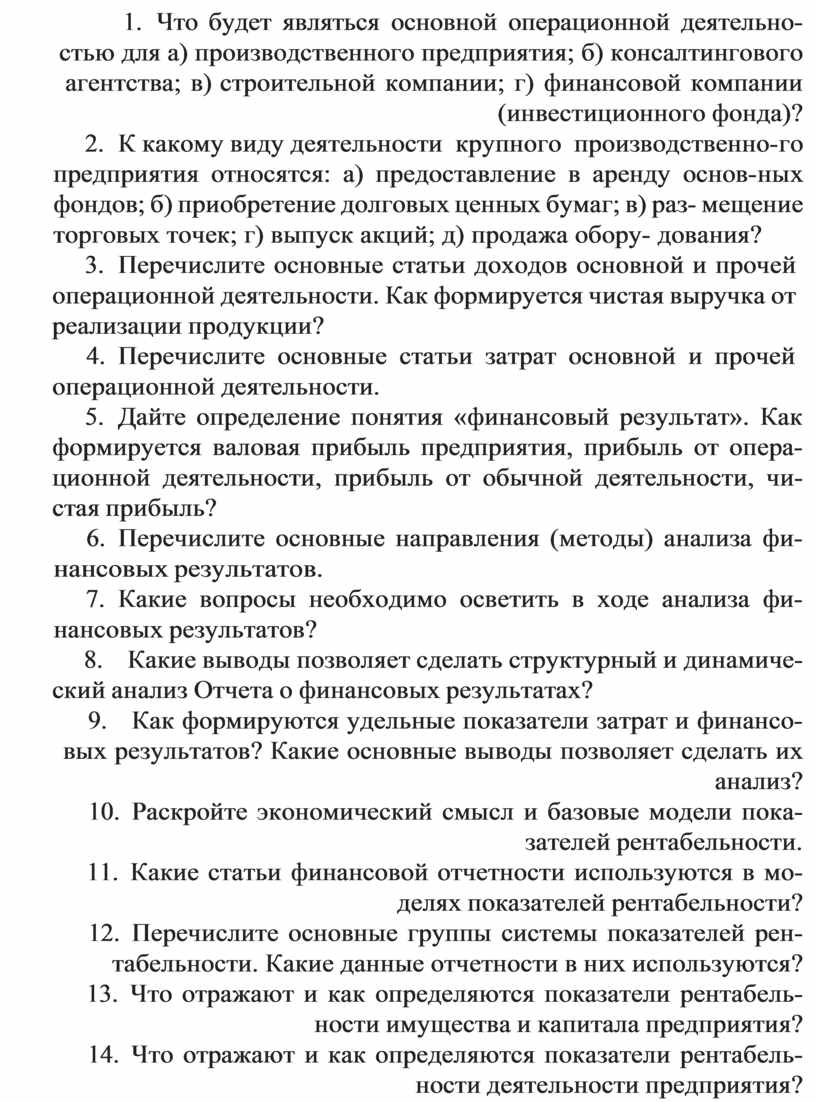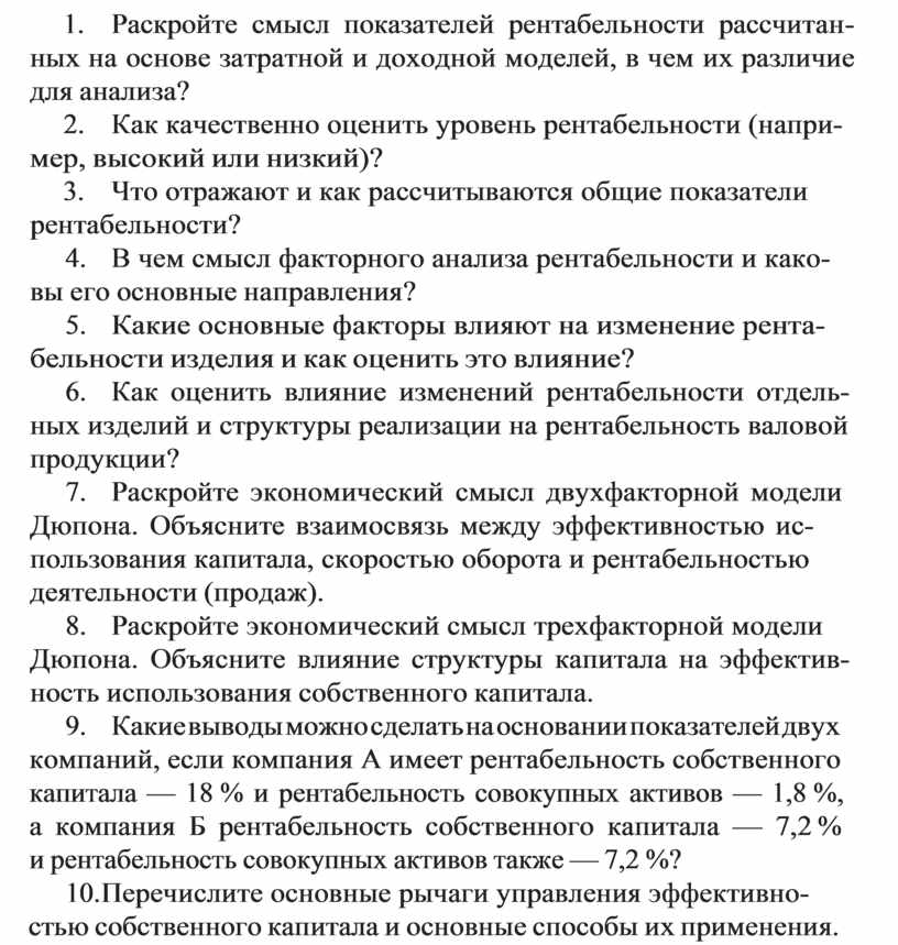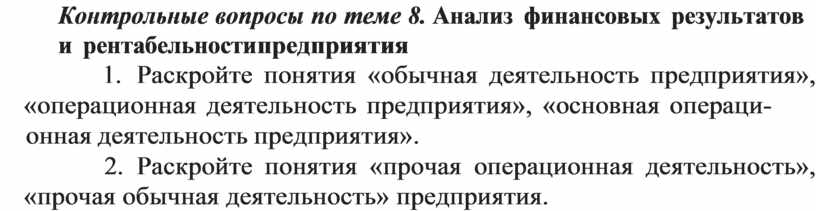 Контрольные вопросы по теме 8. Анализ финансовых результатов и рентабельности предприятия