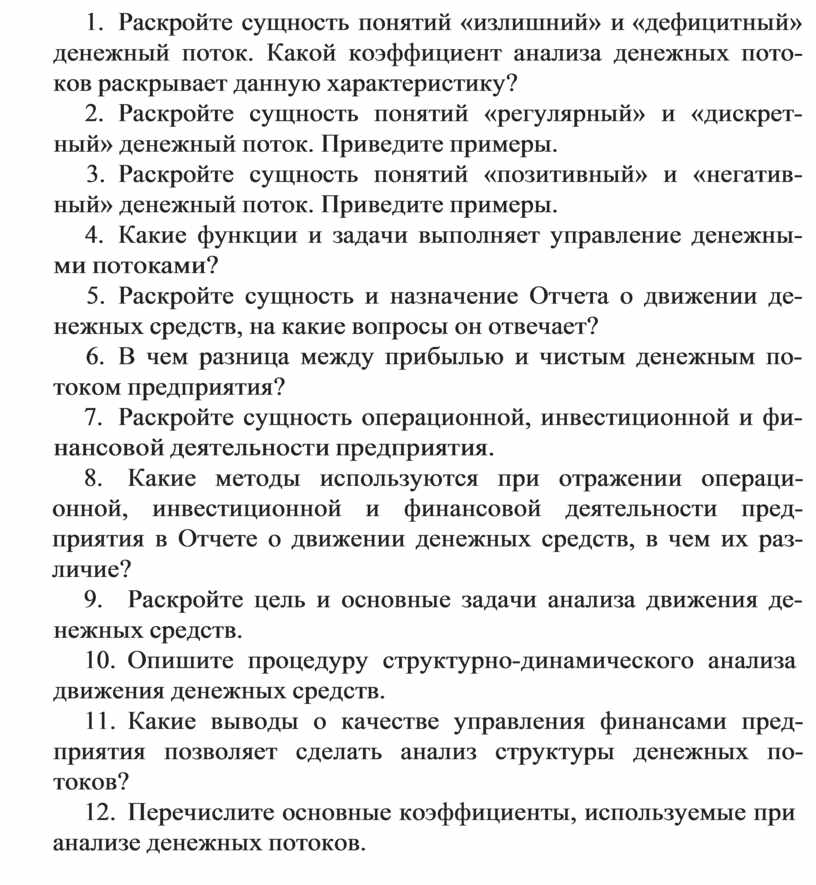 Контрольные вопросы по теме 9. Анализ денежных потоков предприятия