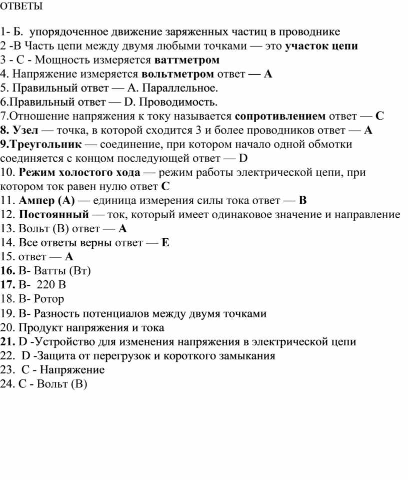 7.Отношение напряжения к току называется сопротивлением ответ — C