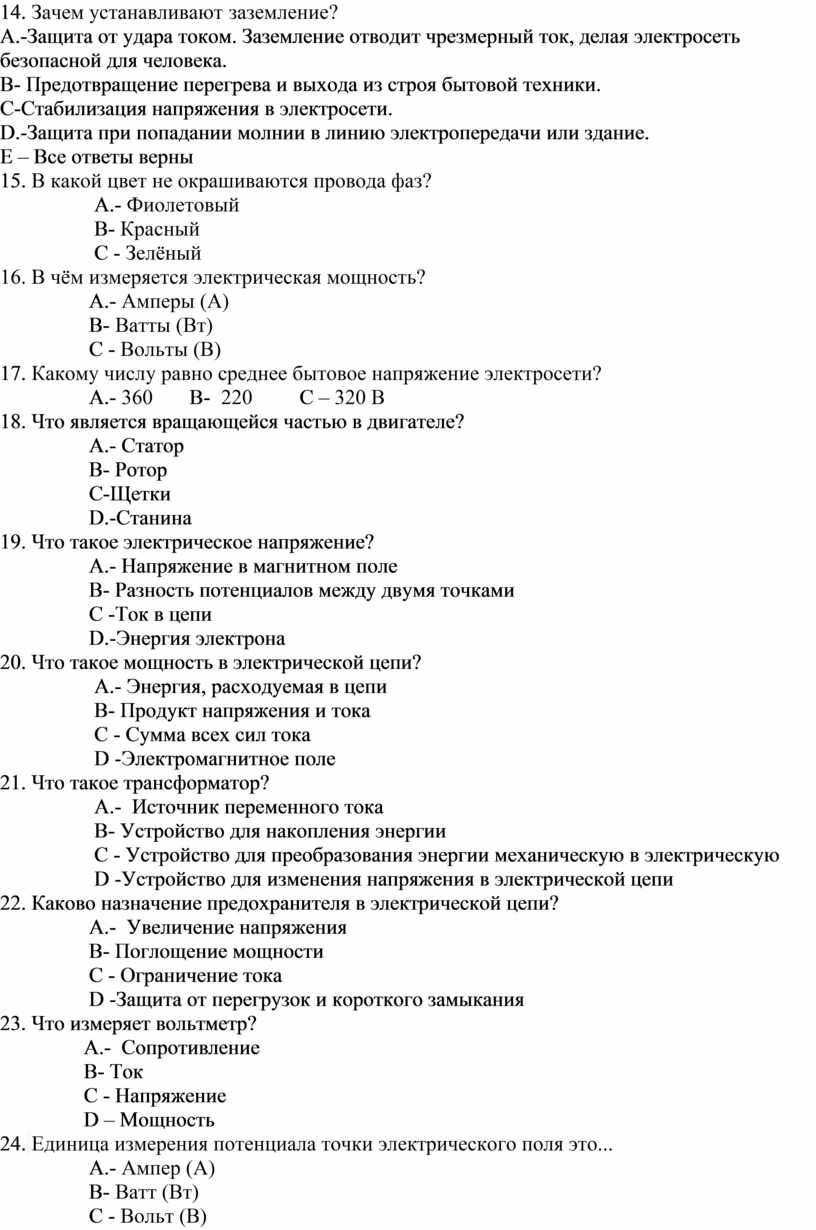 14. Зачем устанавливают заземление?
