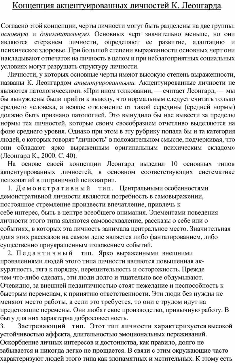 Концепция акцентуированных личностей К. Леонгарда.