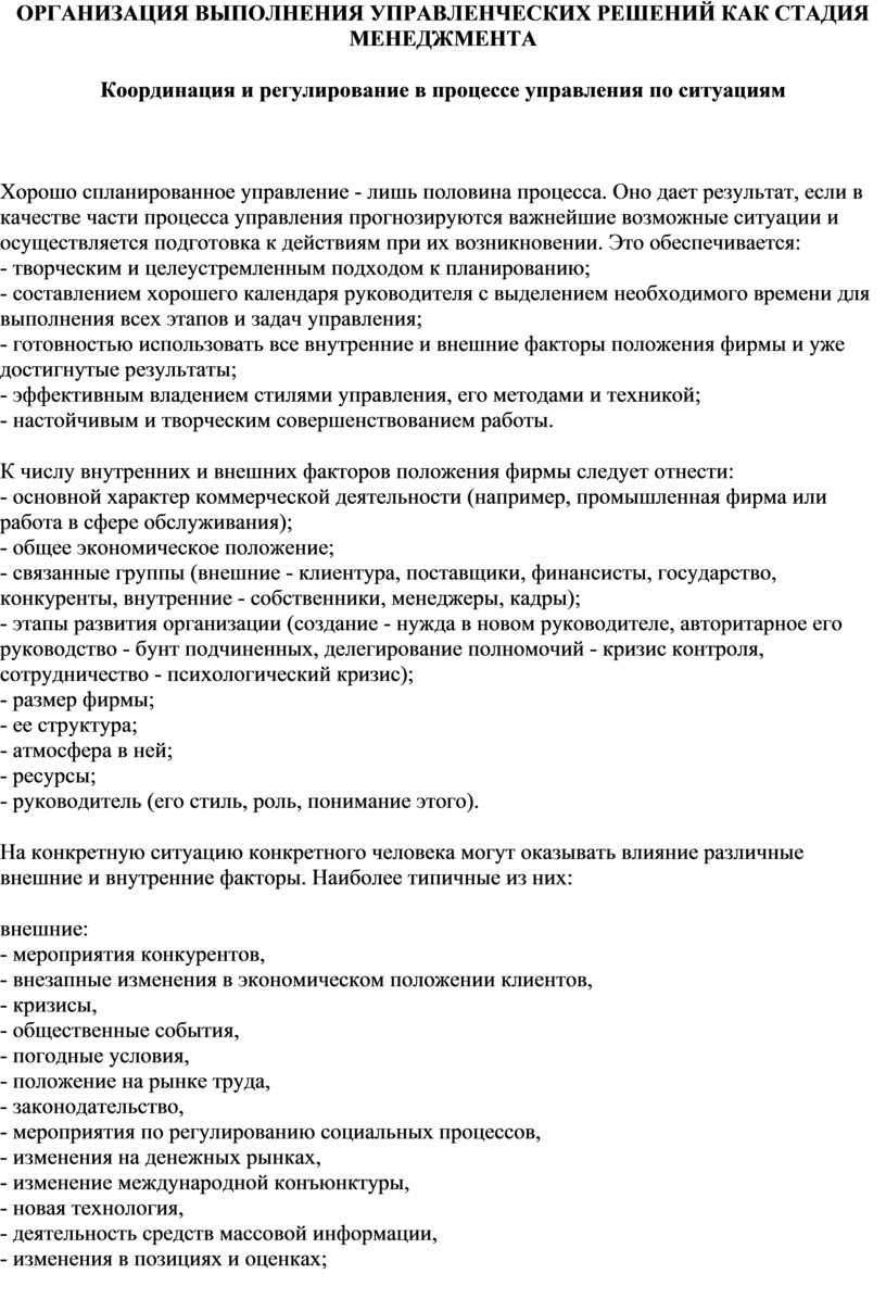 ОРГАНИЗАЦИЯ ВЫПОЛНЕНИЯ УПРАВЛЕНЧЕСКИХ РЕШЕНИЙ КАК СТАДИЯ МЕНЕДЖМЕНТА