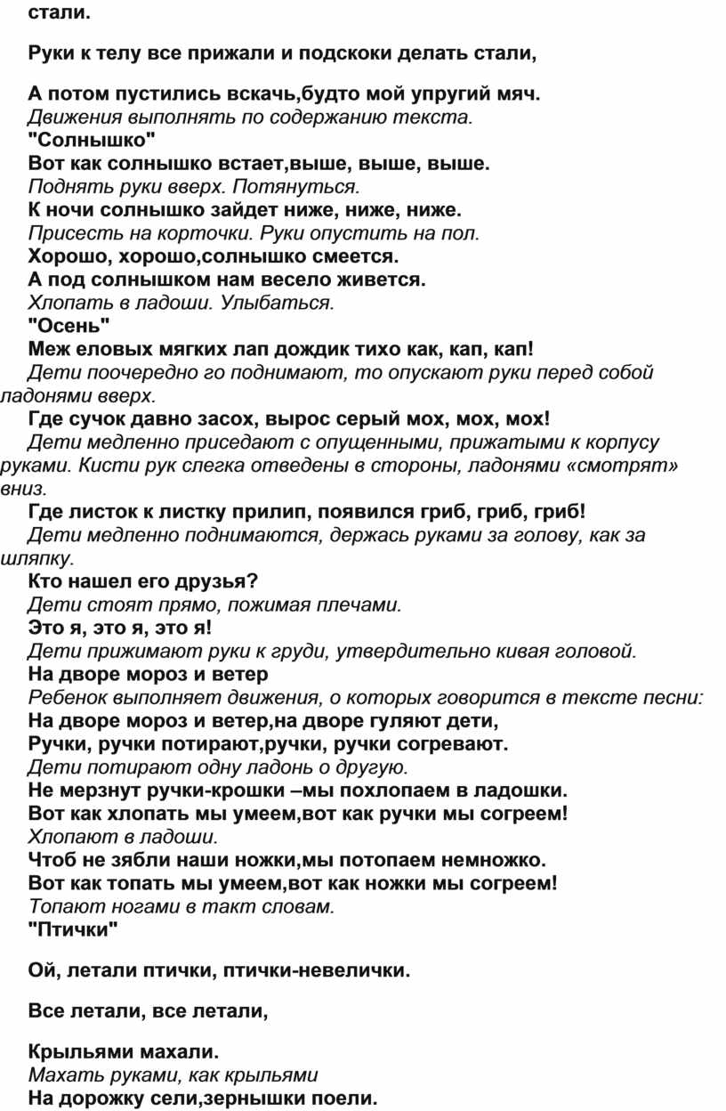 Движения выполнять по содержанию текста.