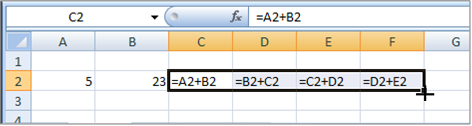 Аналогично, при копировании формулы вдоль строки в адресах ячеек номер строки не меняется, а номер столбца меняется: при копировании вправо – на номер следующего столбца, при копировании влево – на номер предыдущего столбца.