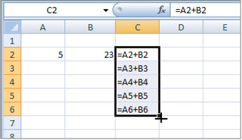 При этом в адресах ячеек номер столбца не меняется, а номер строки меняется на единицу: при копировании вниз – увеличивается на 1, при копировании вверх – уменьшается на 1.
