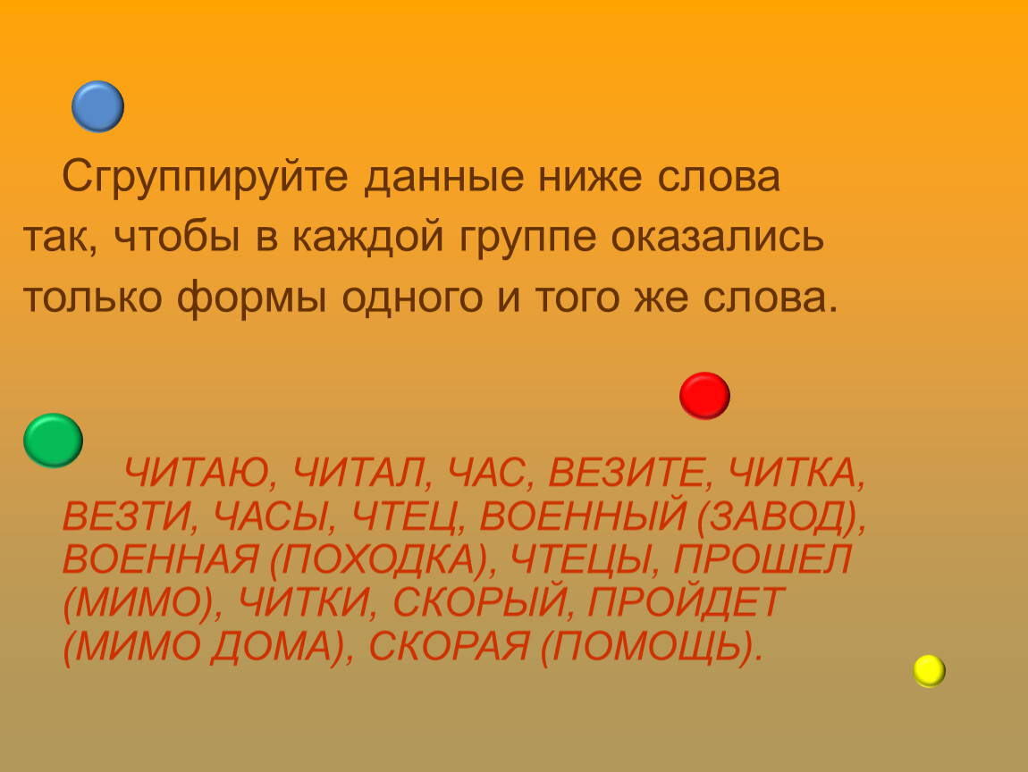 Сгруппируйте данные ниже слова