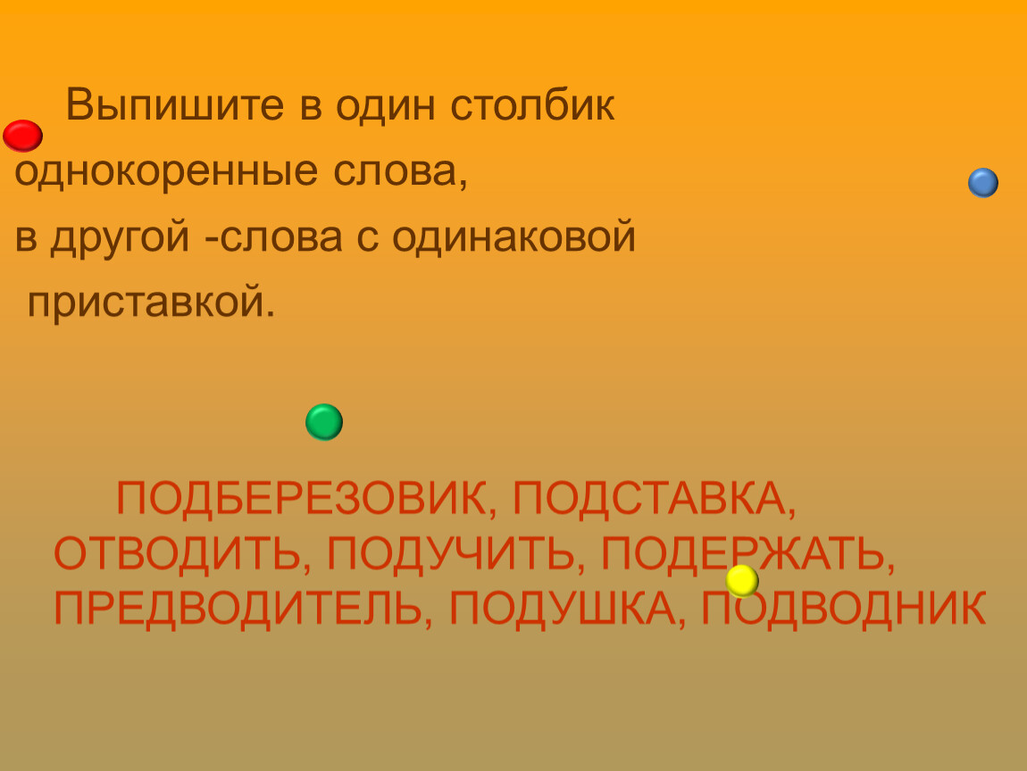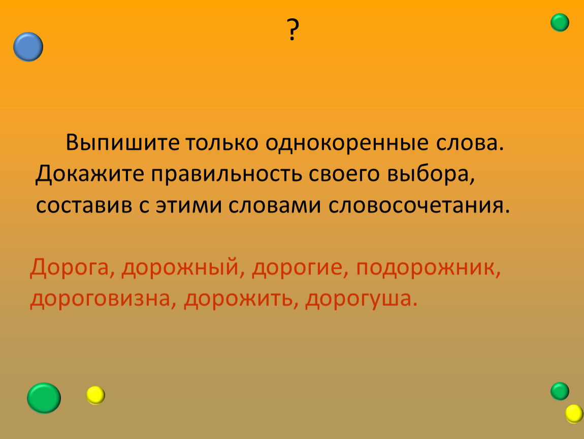 Выпишите только однокоренные слова. Докажите правильность своего выбора, составив с этими словами словосочетания.