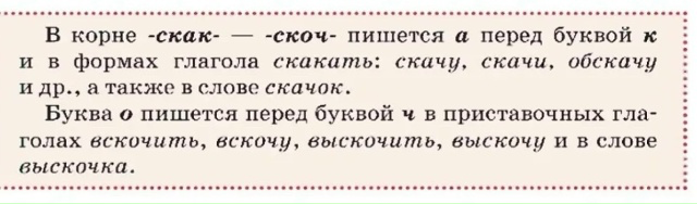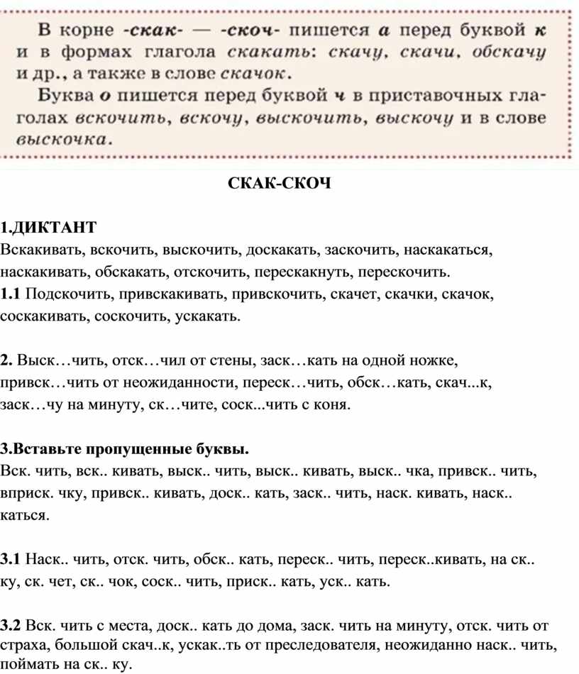 3.2 Вск. чить с места, доск.. кать до дома, заск. чить на минуту, отск. чить от страха, большой скач..к, ускак..ть от преследователя, неожиданно наск.. чить, поймать на ск.. ку.