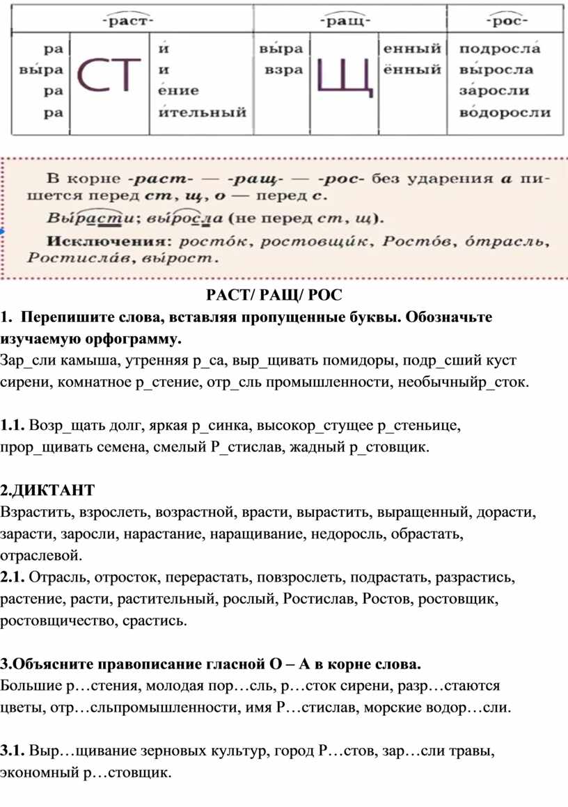 3.2. Р.сла, р..стёт, выр..сла, выр..стет, подр..сла, подр..стёт,
