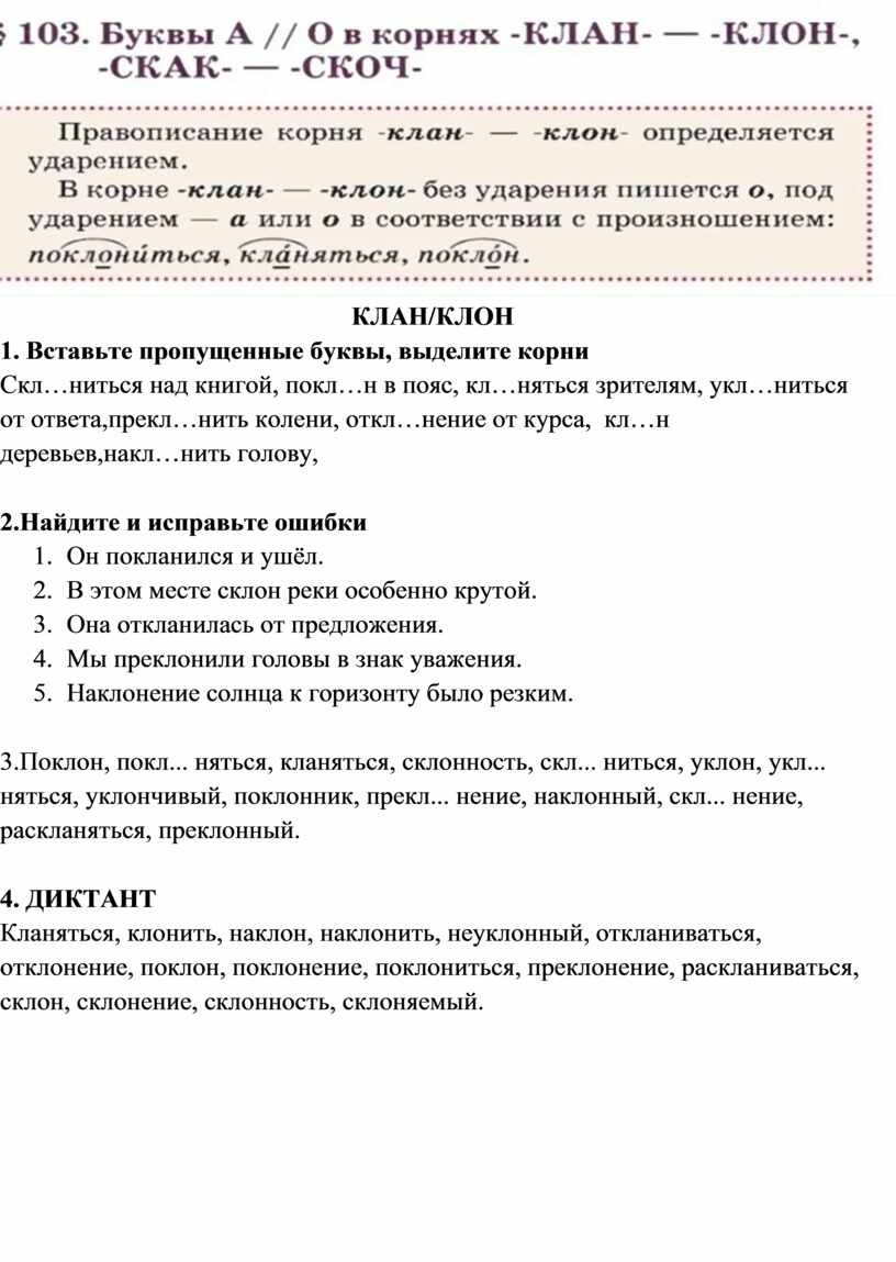 Скл…ниться над книгой, покл…н в пояс, кл…няться зрителям, укл…ниться от ответа,прекл…нить колени, откл…нение от курса, кл…н деревьев,накл…нить голову,