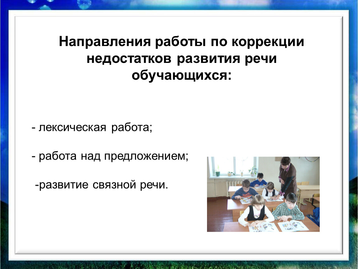 Направления работы по коррекции недостатков развития речи обучающихся: