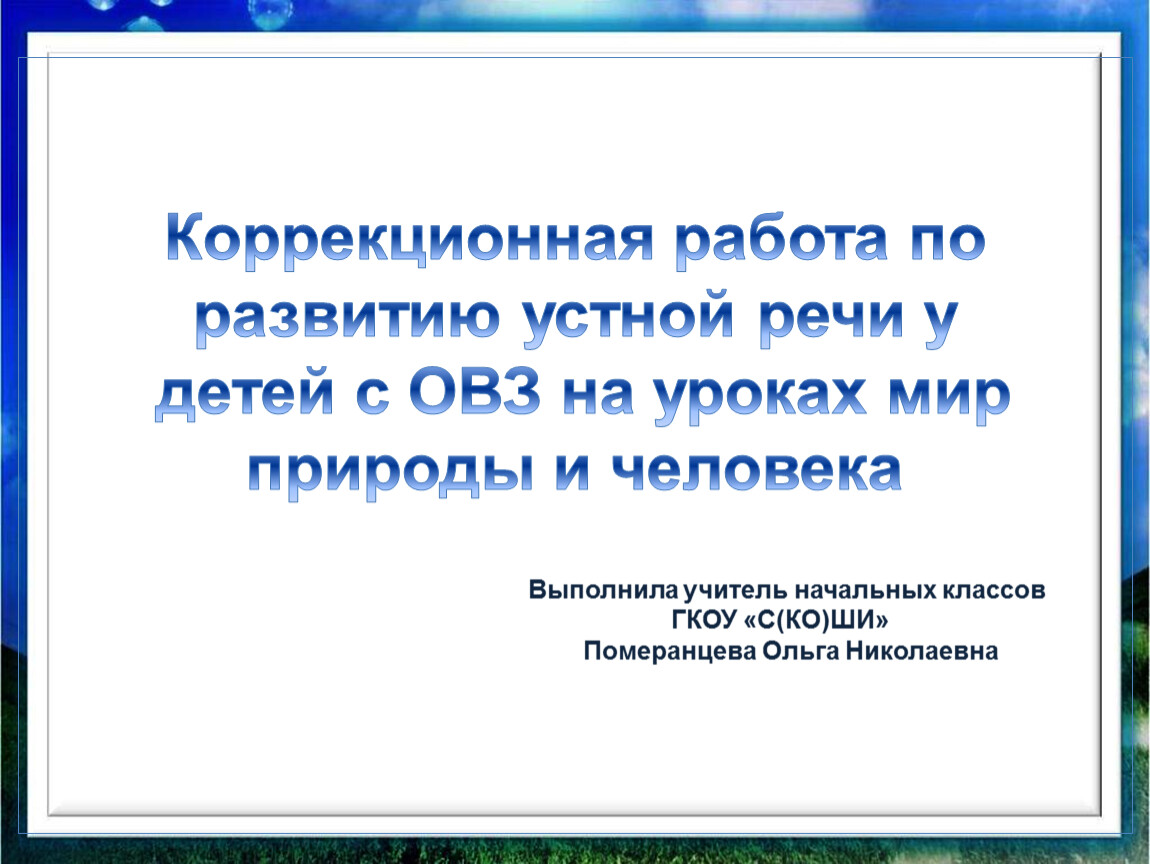Проводимая коррекционная работа по развитию устной речи помогает детям с ОВЗ связно излагать свои мысли в процессе обучения по всем предметам, способствует полноценному общению с людьми, преодолению речевой замкнутости, неуверенности в себе, помогает успешной социализации детей в общество.