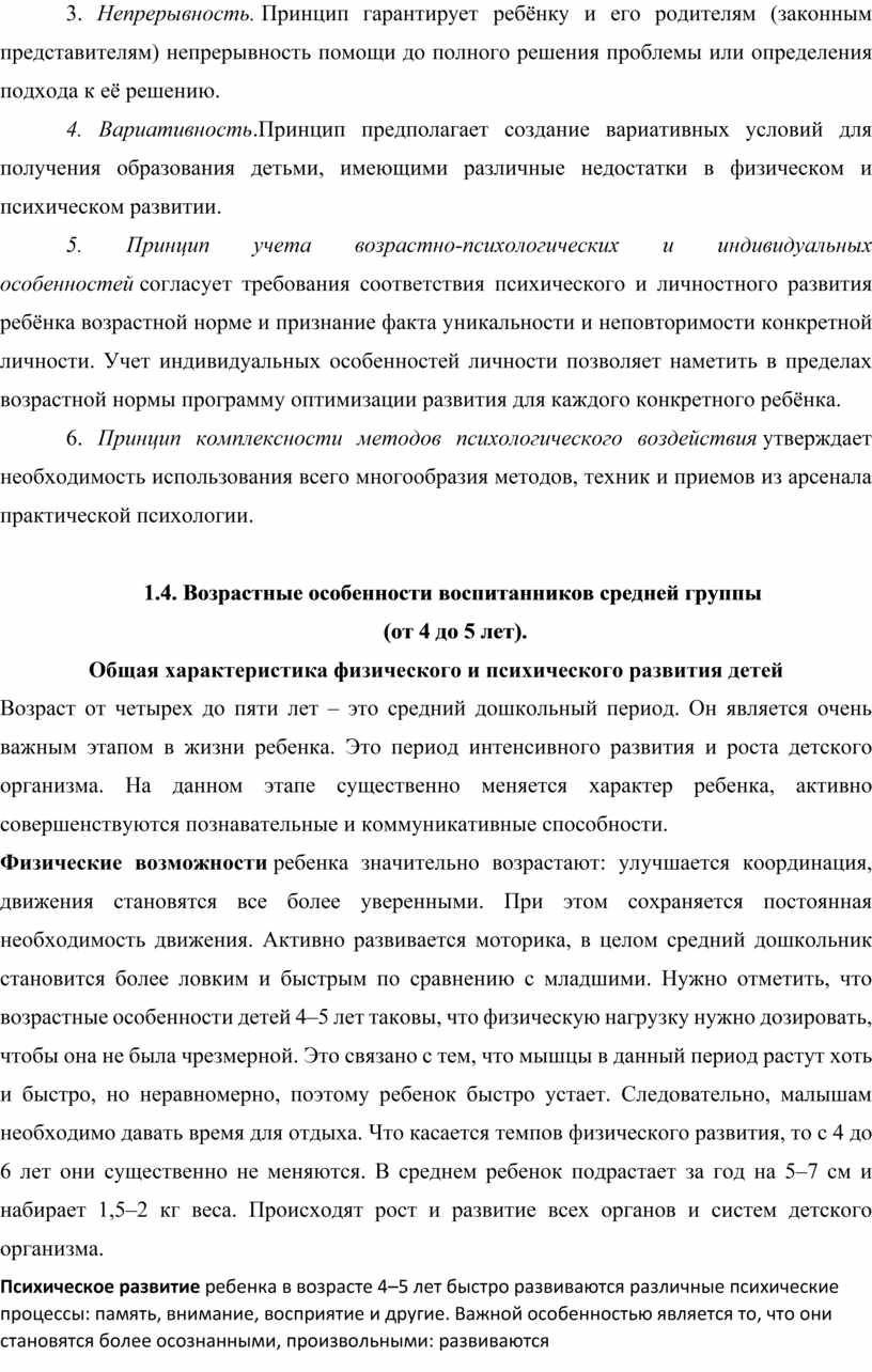 1.4. Возрастные особенности воспитанников средней группы