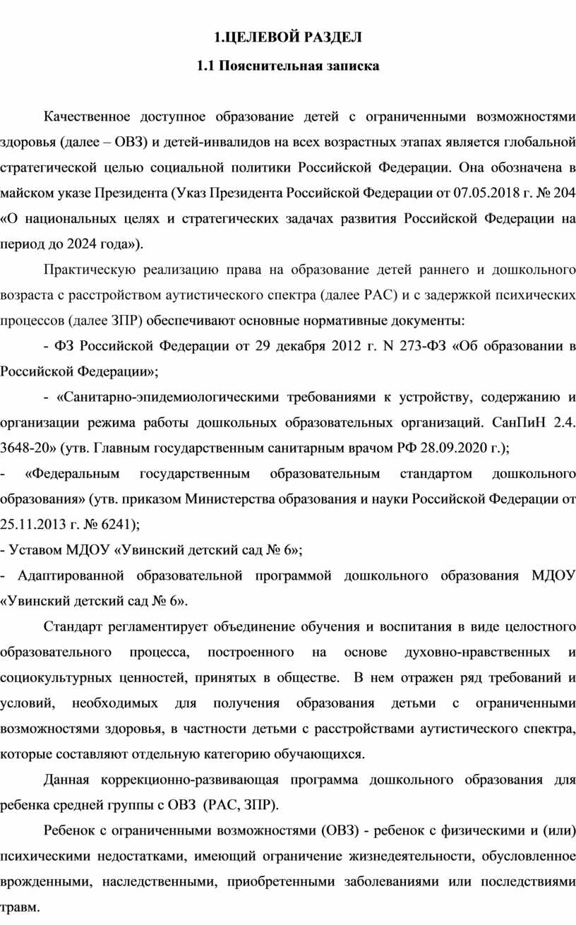 1.ЦЕЛЕВОЙ РАЗДЕЛ