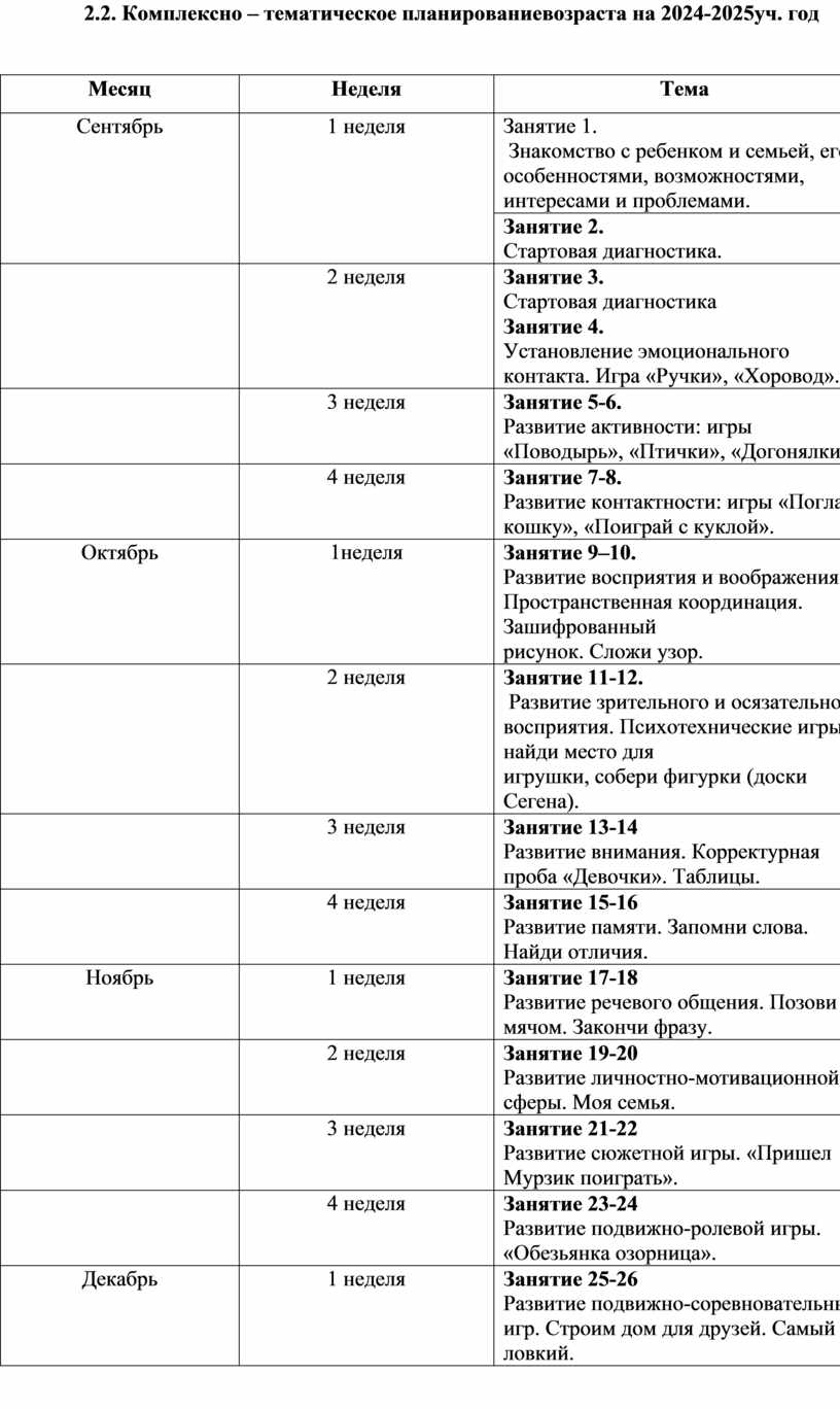 2.2. Комплексно – тематическое планированиевозраста на 2024-2025уч. год