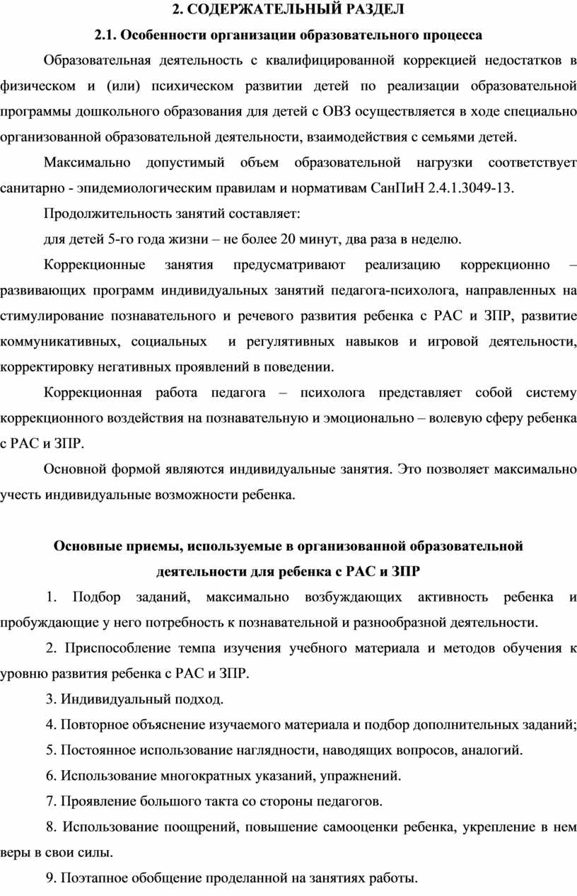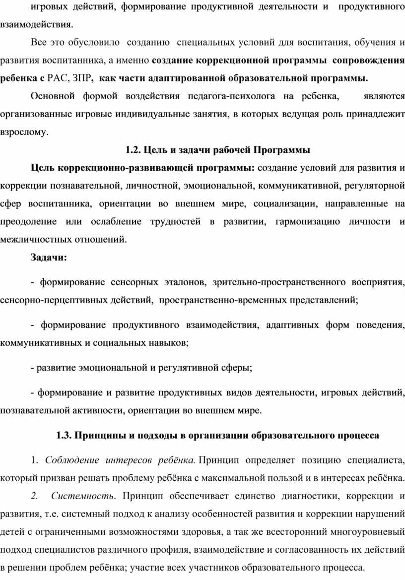 Все это обусловило созданию специальных условий для воспитания, обучения и развития воспитанника, а именно создание коррекционной программы сопровождения ребенка с РАС, ЗПР, как части адаптированной образовательной программы.