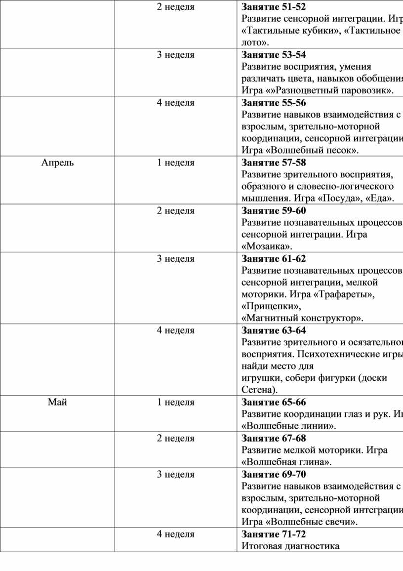 - формирование сенсорных эталонов, зрительно-пространственного восприятия, сенсорно-перцептивных действий, пространственно-временных представлений;