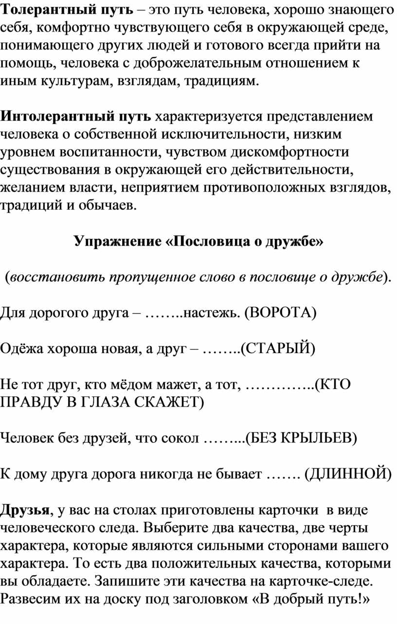 характера обладает толерантная личность. У каждого из вас на столах лежат