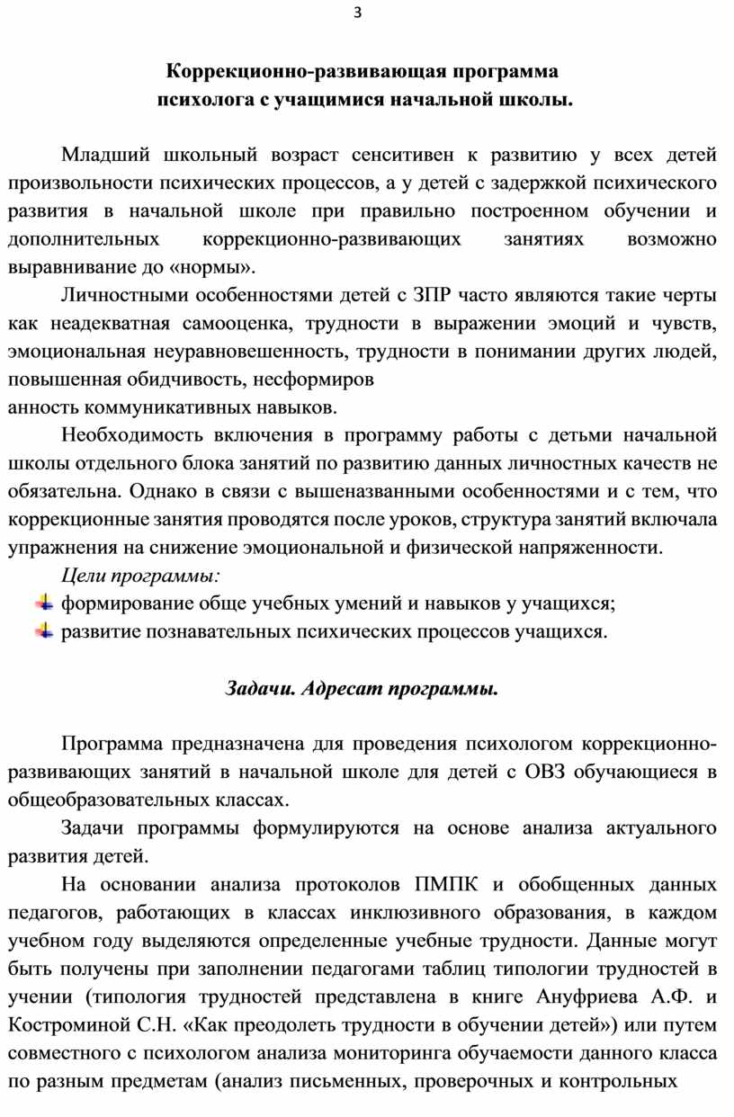 Коррекционно-развивающая программа психолога с учащимися начальной школы.